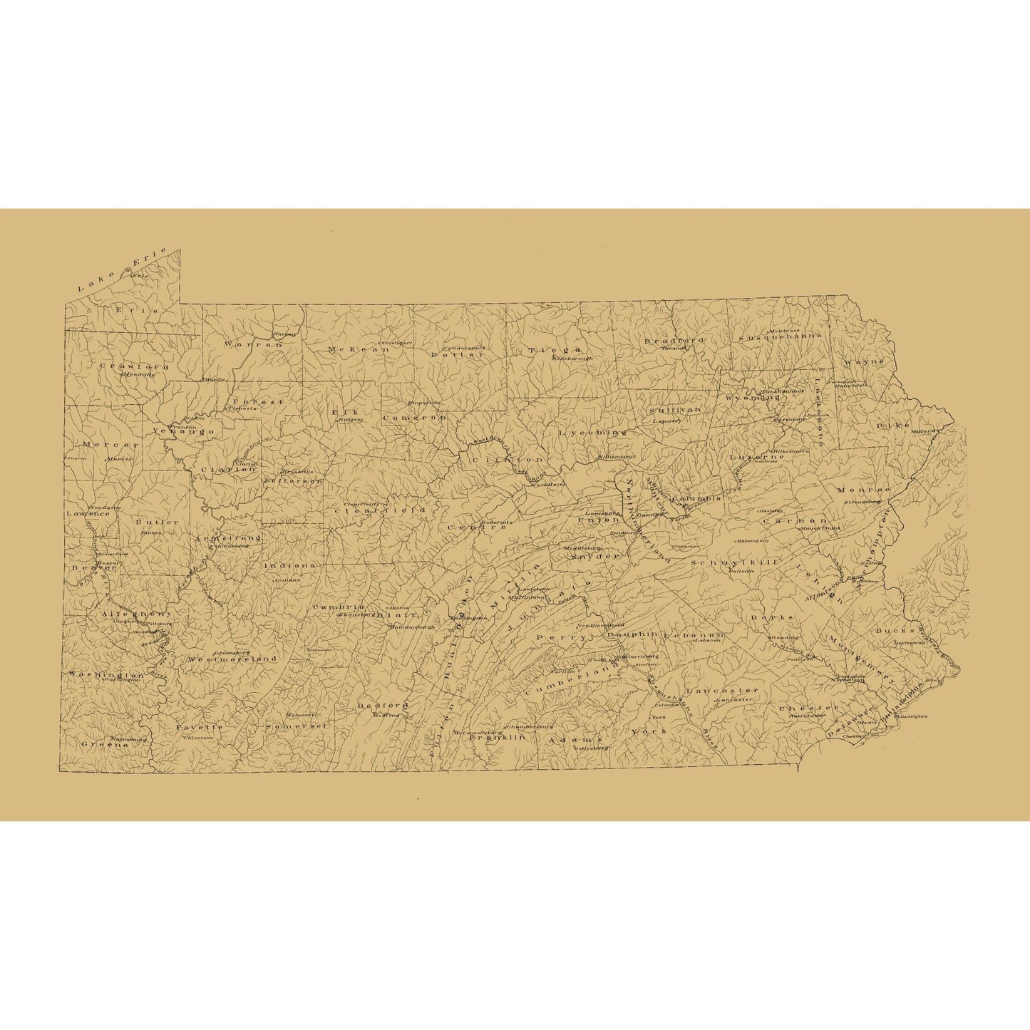 Old State Maps - Pennsylvania - 1893 - This is an exquisite full-color Reproduction printed on high-quality gloss paper, art paper or canvas.