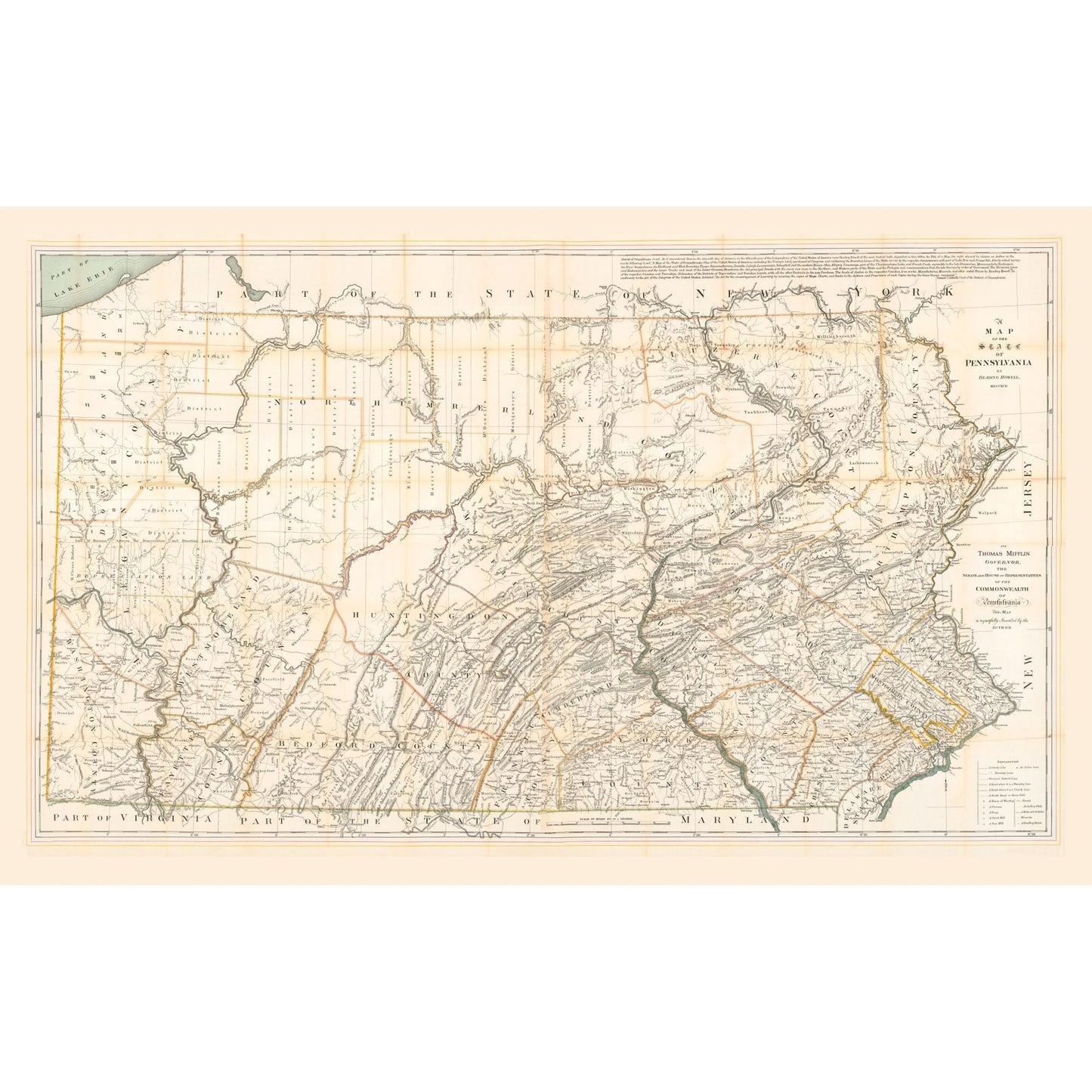 Historic State Map - Pennsylvania - Howell 1792 - 37.00 x 23 - Vintage Wall Art