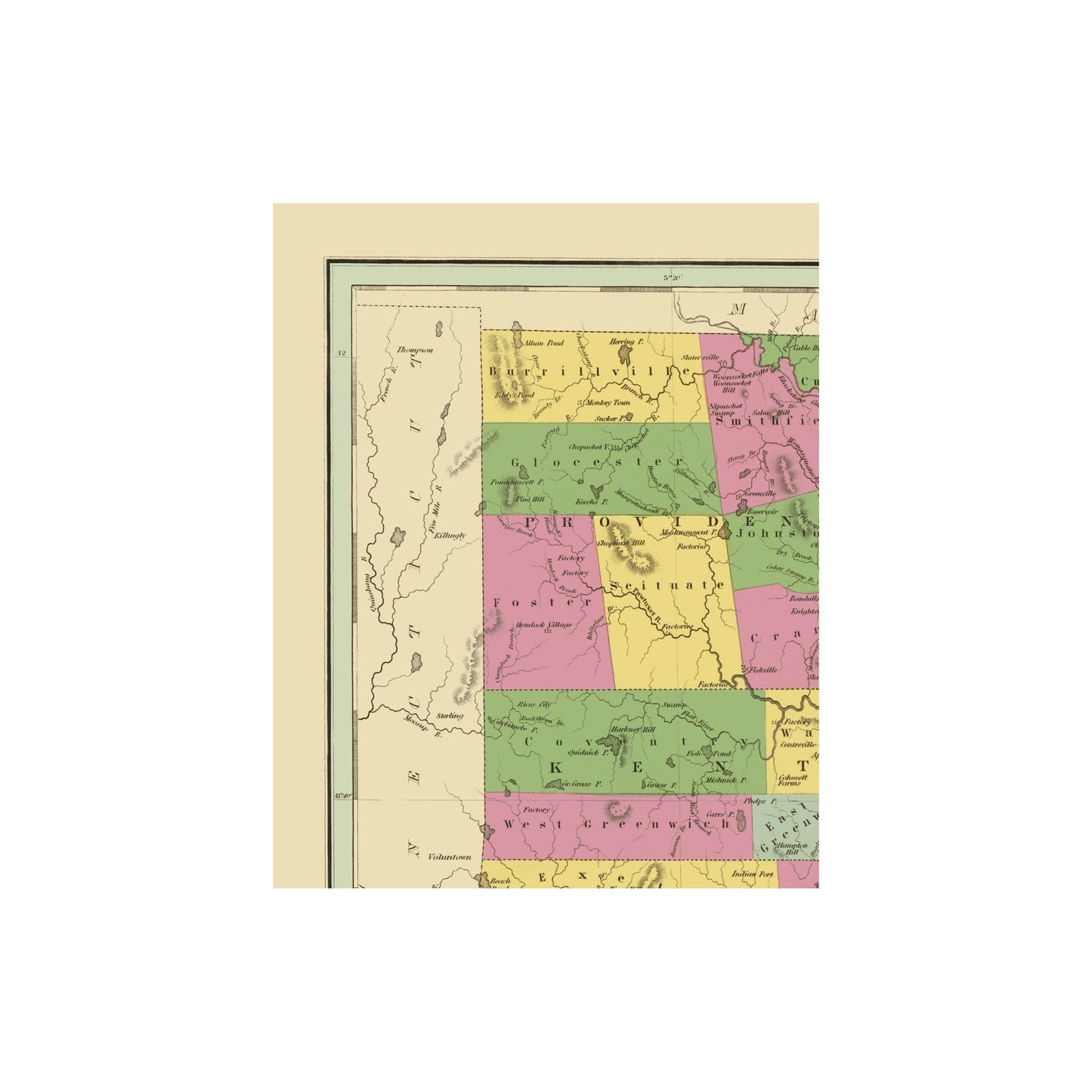 Old State Map - Rhode Island - Strong 1841 - This is an exquisite full-color Reproduction printed on high-quality gloss paper, art paper or canvas.