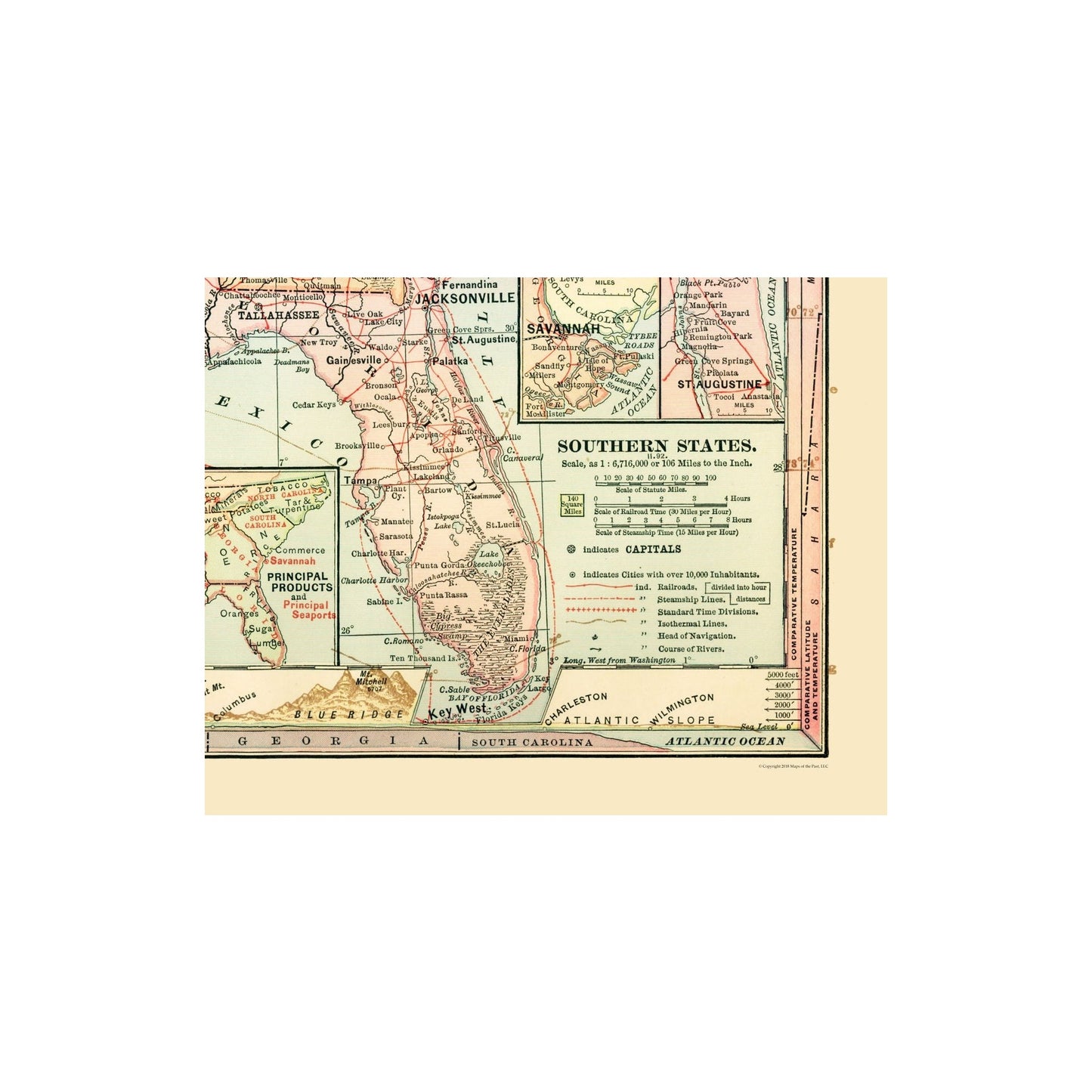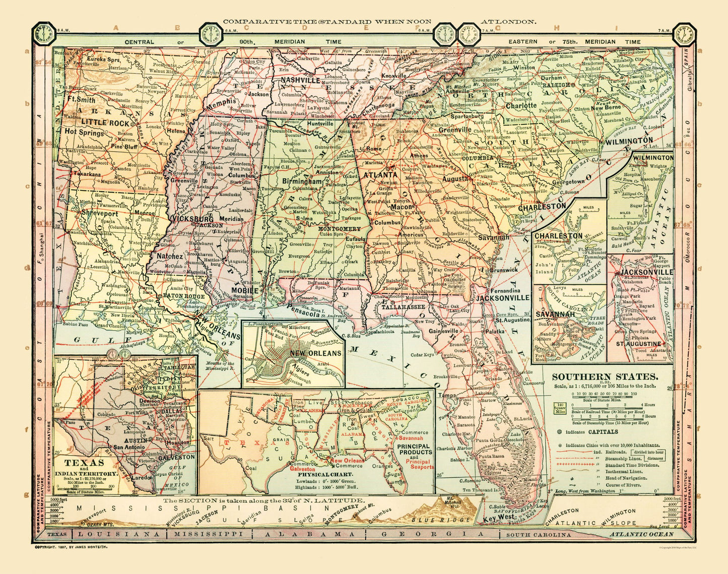 Old State Maps - Southern States - Monteith 1882 - This is an exquisite full-color Reproduction printed on high-quality gloss paper, art paper or canvas.