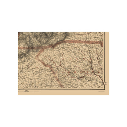 Old State Map - Eastern Tennessee, Parts of Adjoining States 1865 - This is an exquisite full-color Reproduction printed on high-quality gloss paper, art paper or canvas.