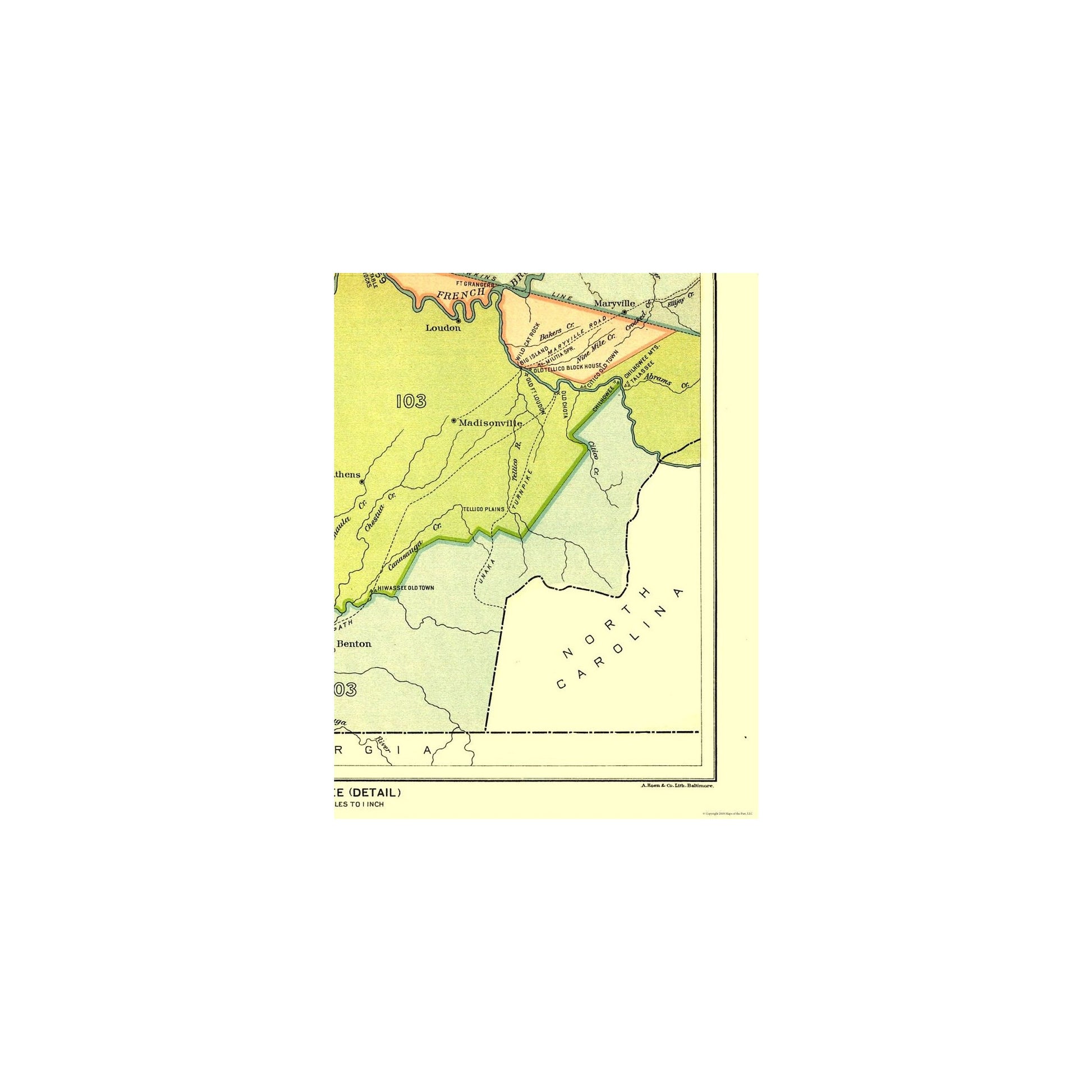 Old State Maps - Tennessee - Detail - Hoen 1896 - This is an exquisite full-color Reproduction printed on high-quality gloss paper, art paper or canvas.