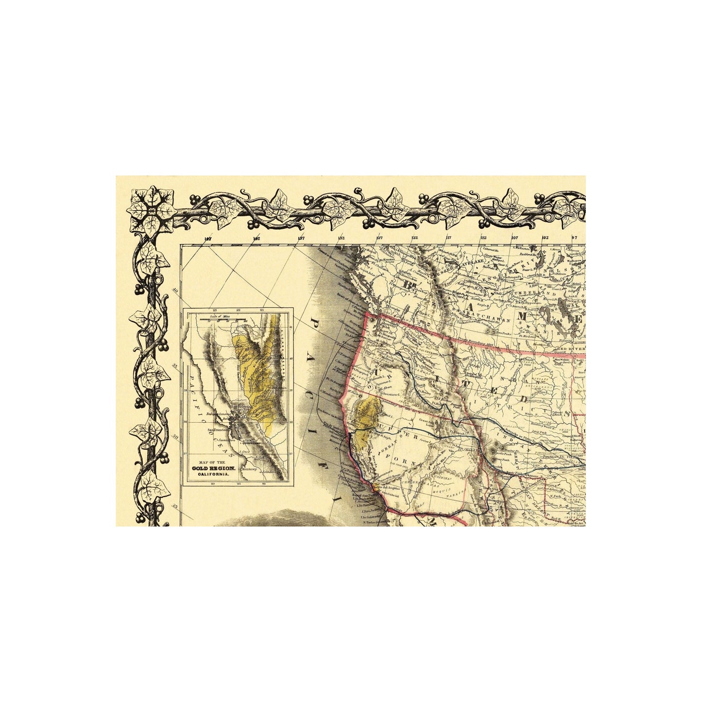 Old Map - United States, Mexico - Colton 1849 - This is an exquisite full-color Reproduction printed on high-quality gloss paper, art paper or canvas.