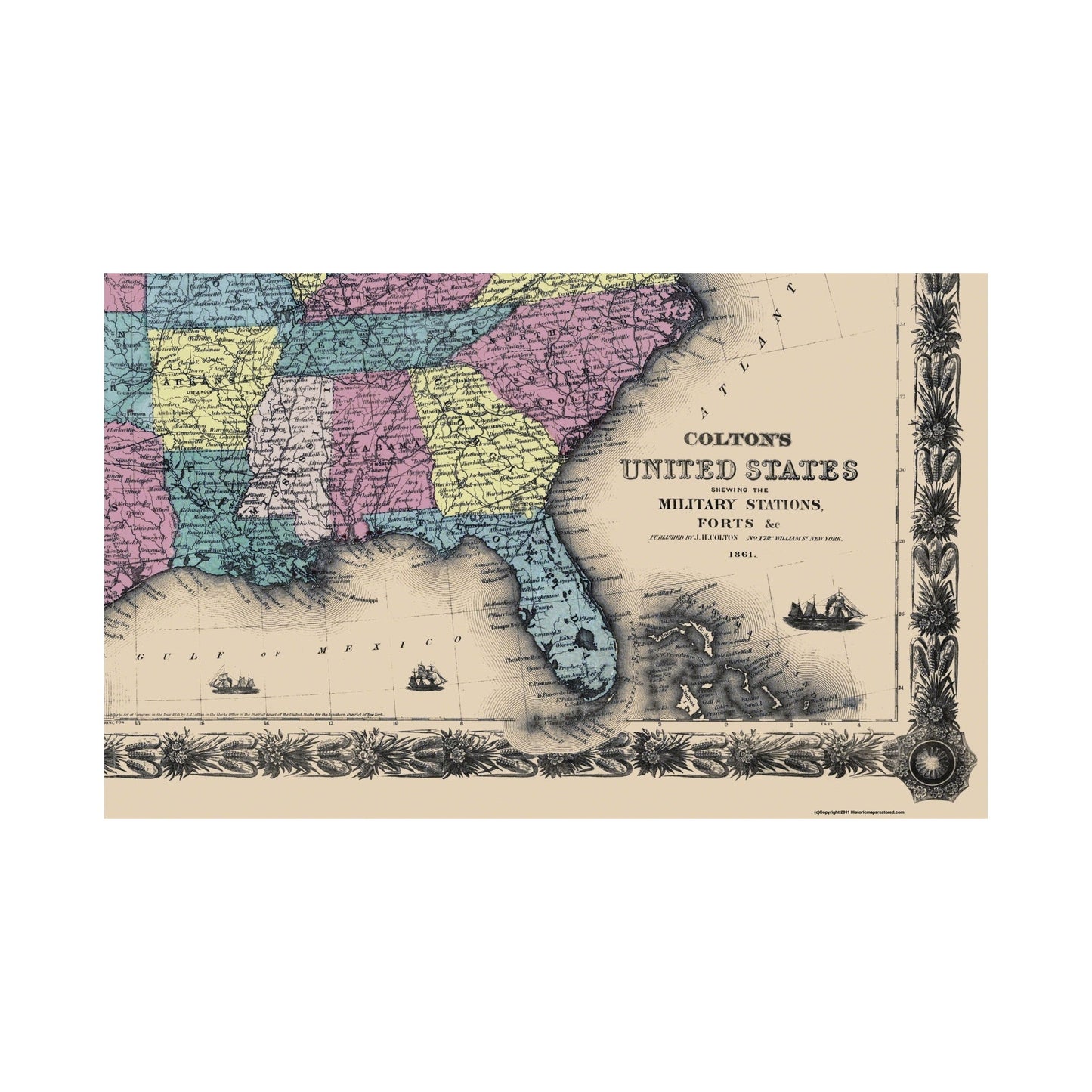 Historic State Map - United States Military Stations Forts - Colton 1861 - 37.19 x 23 - Vintage Wall Art