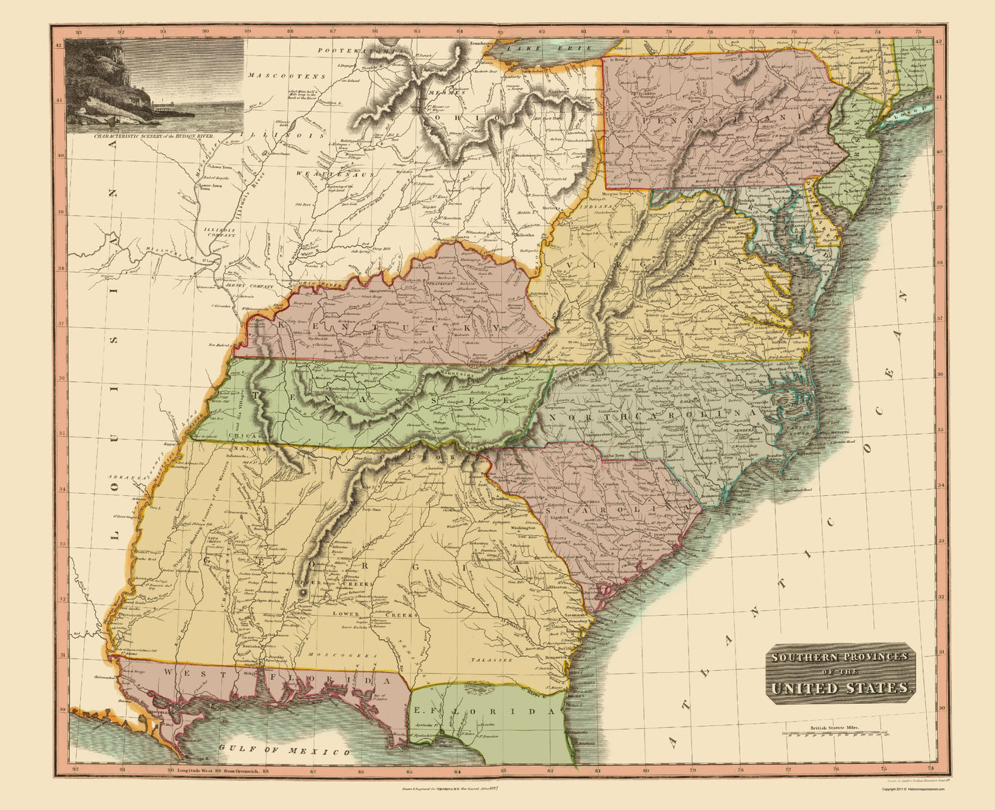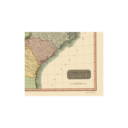 Historic State Map - United States South Eastern - Thomson 1817 - 23 x 28.27 - Vintage Wall Art