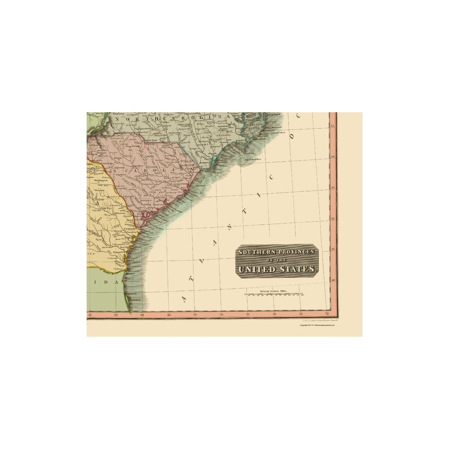 Old State Map - Southeastern United States - Thomson 1817 - This is an exquisite full-color Reproduction printed on high-quality gloss paper, art paper or canvas.