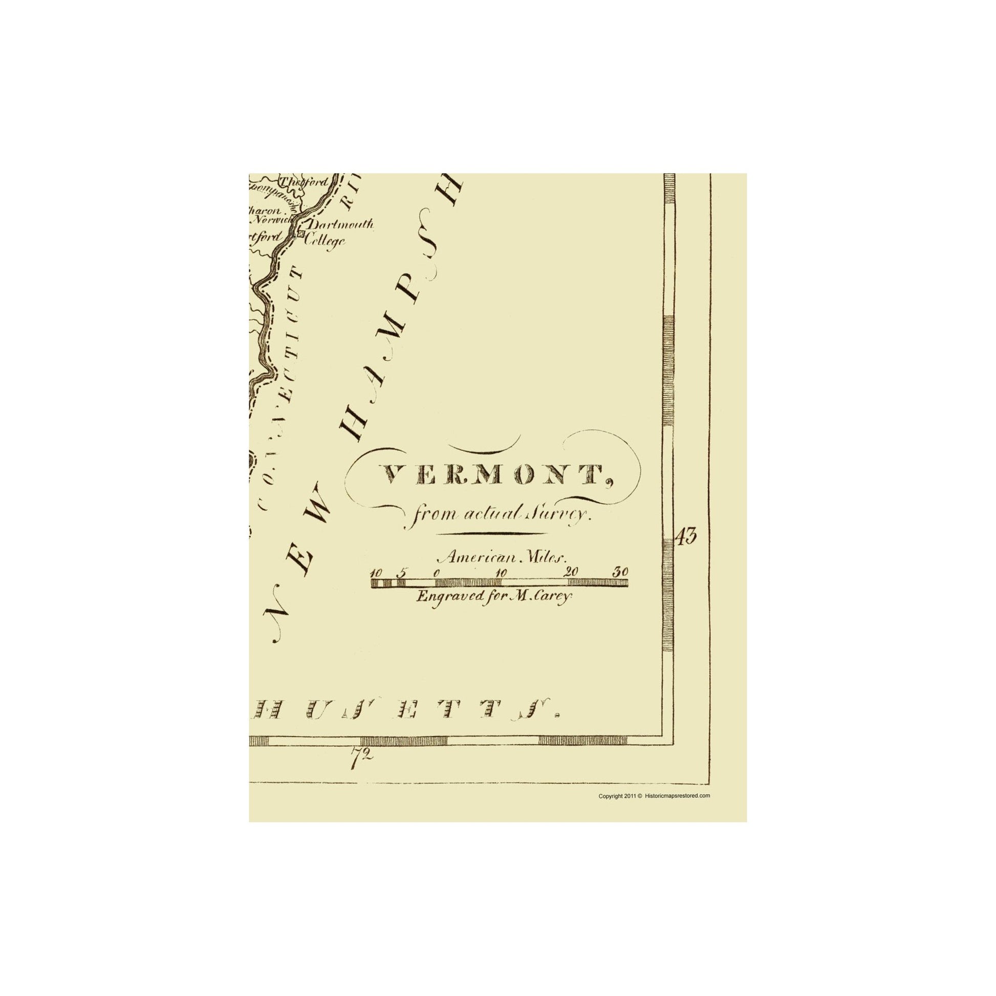 Historic State Map - Vermont - Carey 1796 - 23 x 29.97 - Vintage Wall Art