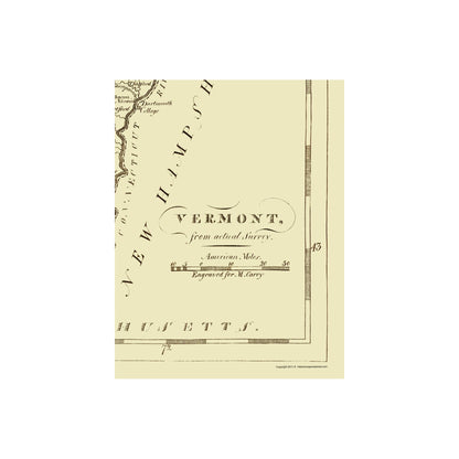 Old State Map - Vermont - Carey 1796 - This is an exquisite full-color Reproduction printed on high-quality gloss paper, art paper or canvas.