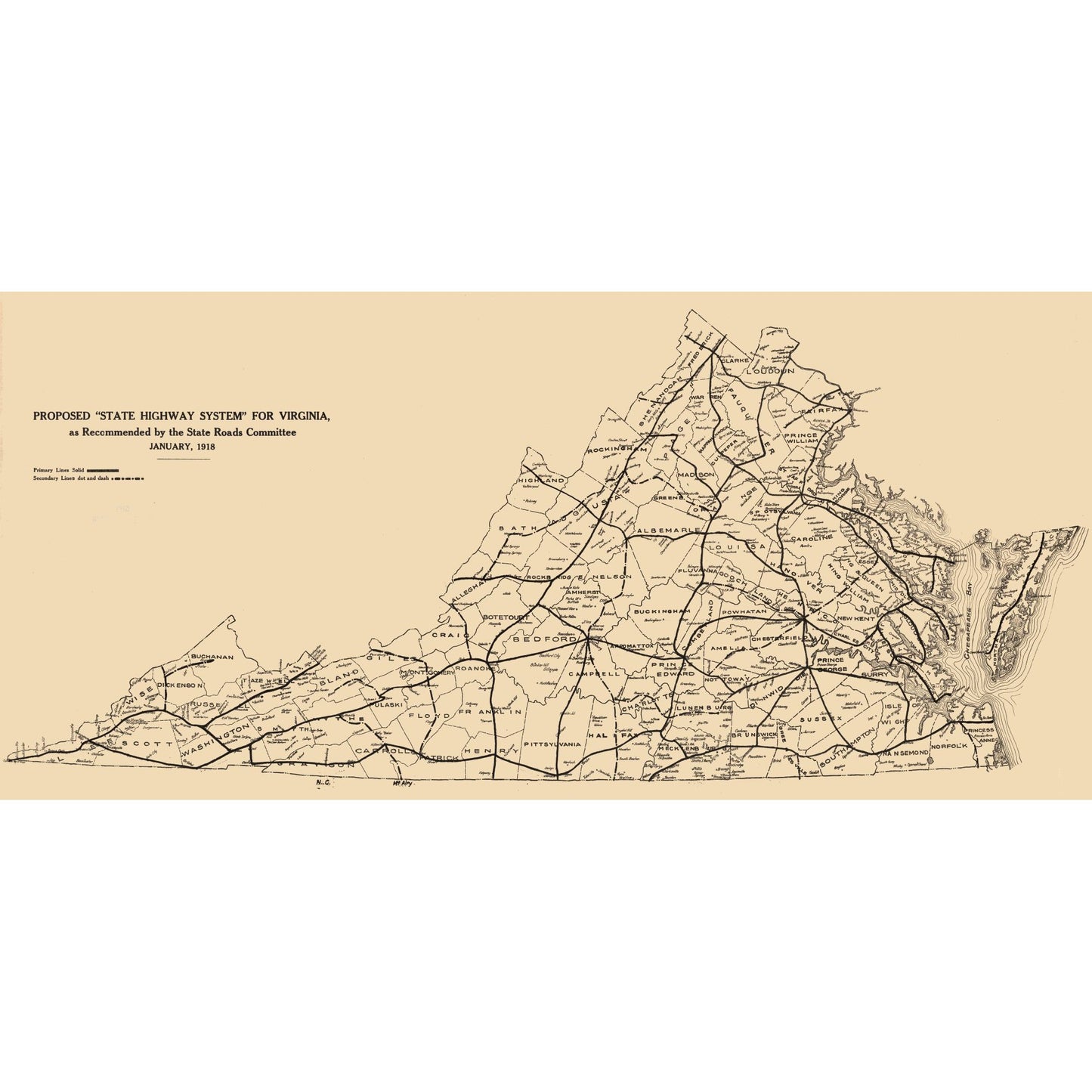Old State Maps - Virginia - 1918 - This is an exquisite full-color Reproduction printed on high-quality gloss paper, art paper or canvas.