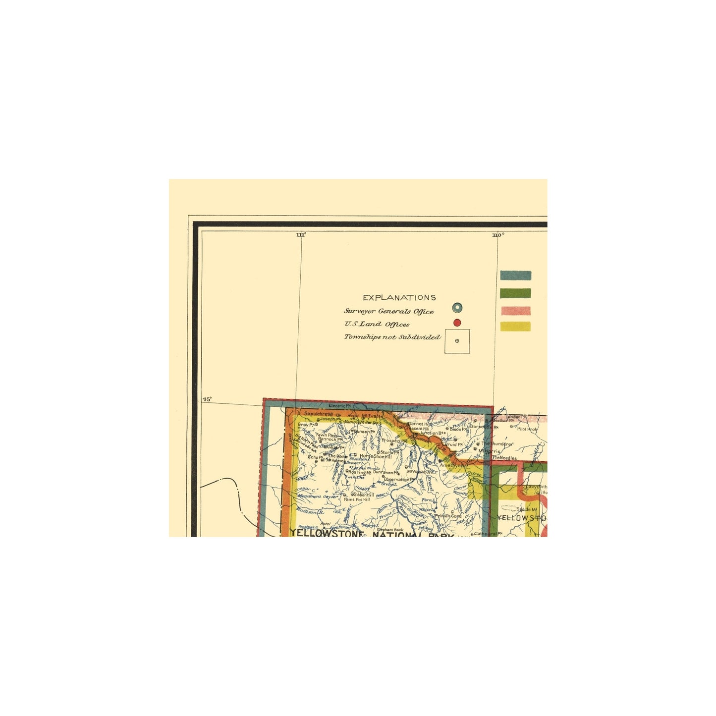 Historic State Map - Yellowstone National Park Boundaries - 1895 - 23 x 24.31 - Vintage Wall Art