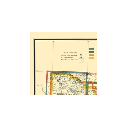Old State Map - Yellowstone National Park Boundaries - 1895 - This is an exquisite full-color Reproduction printed on high-quality gloss paper, art paper or canvas.
