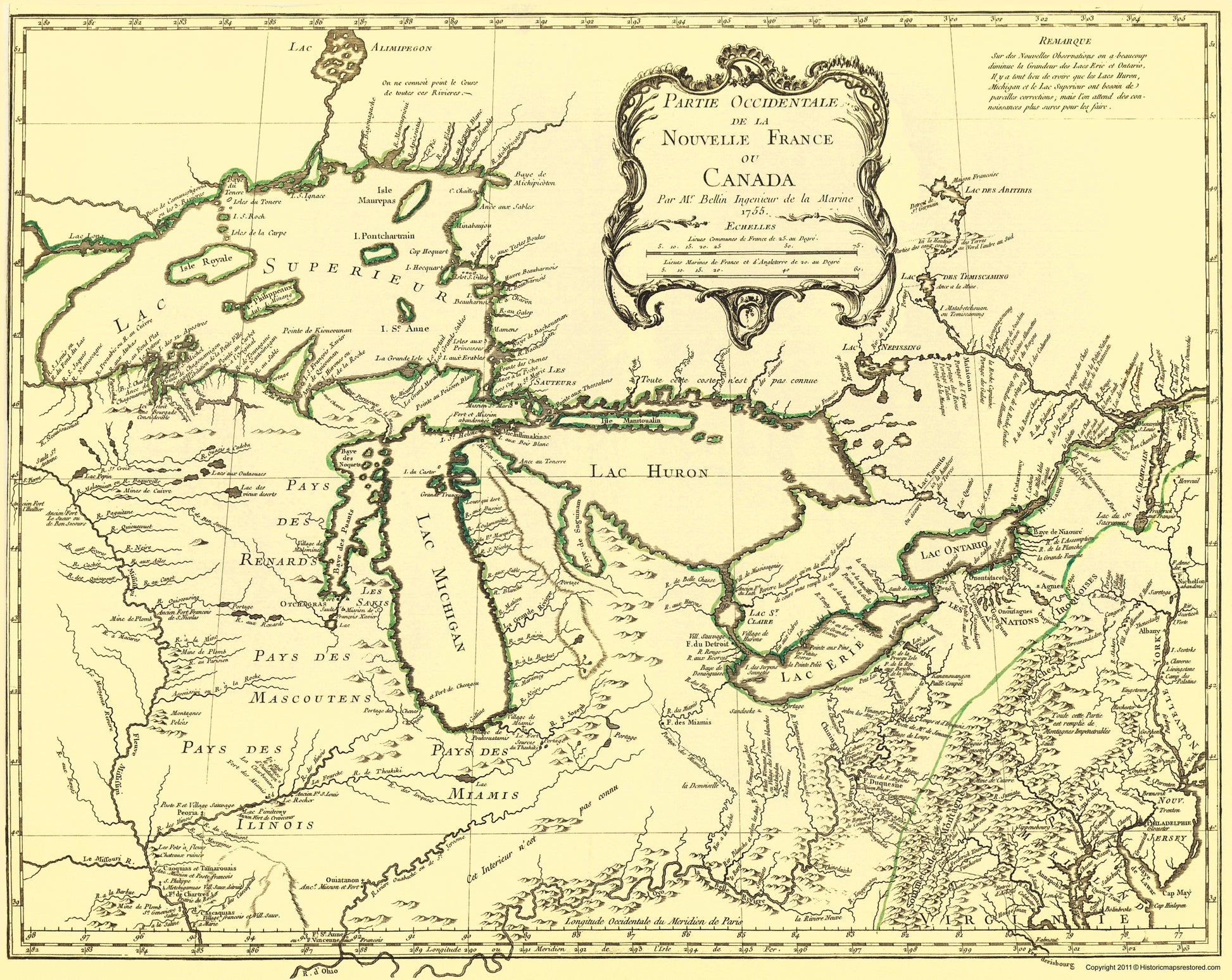 Old War Map - Western Part of New France Or Canada 1755 - This is an exquisite full-color Reproduction printed on high-quality gloss paper, art paper or canvas.