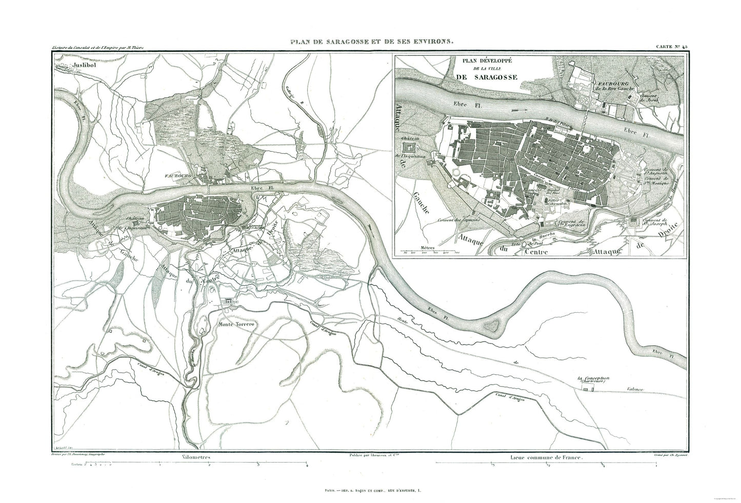 Historic War Map - Zaragoza - Spain - Thiers 1866 - 33.89 x 23 - Vintage Wall Art
