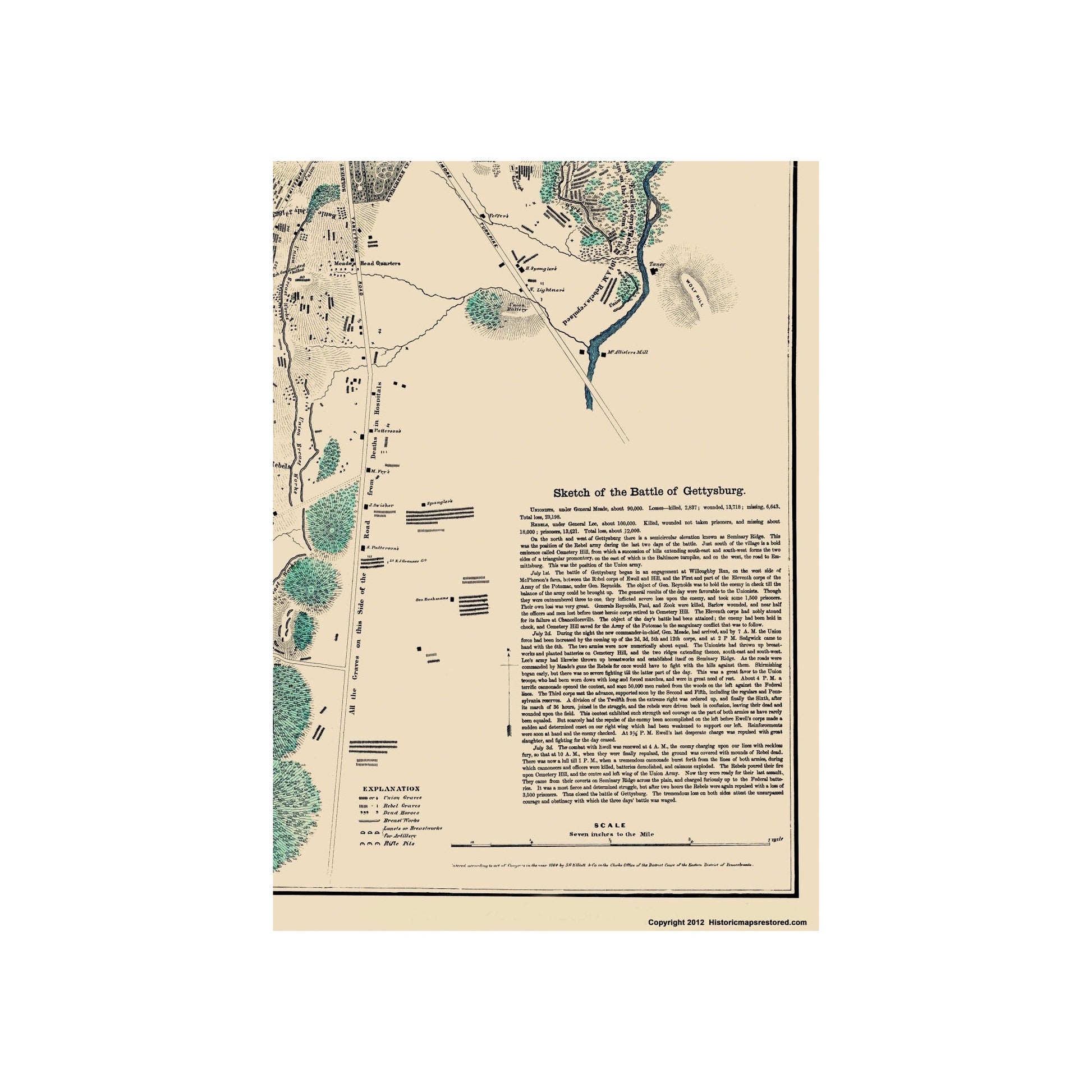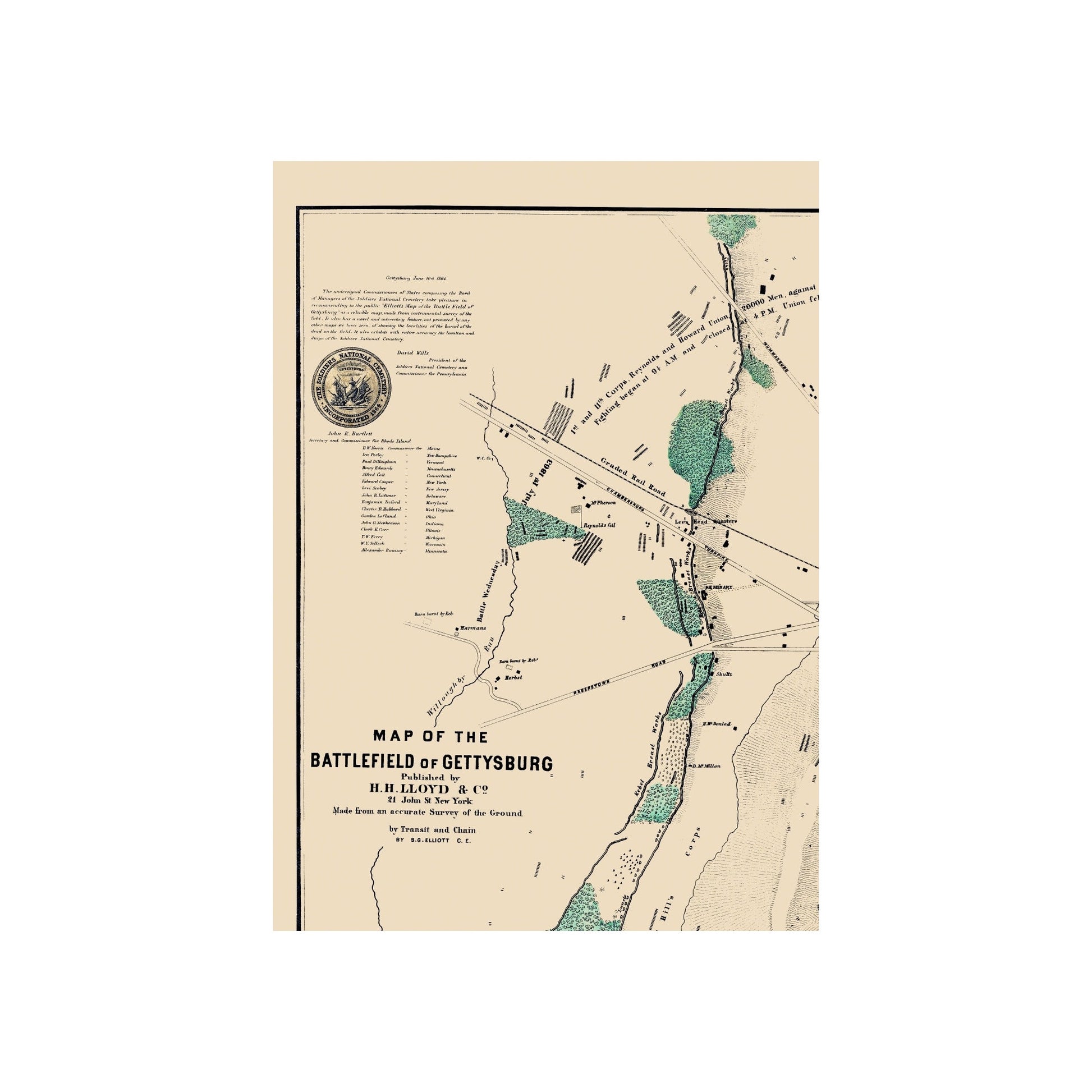 Civil War Map - Battlefield Of Gettysburg Pennsylvania - Lloyd 1864 - This is an exquisite full-color Reproduction printed on high-quality gloss paper, art paper or canvas.