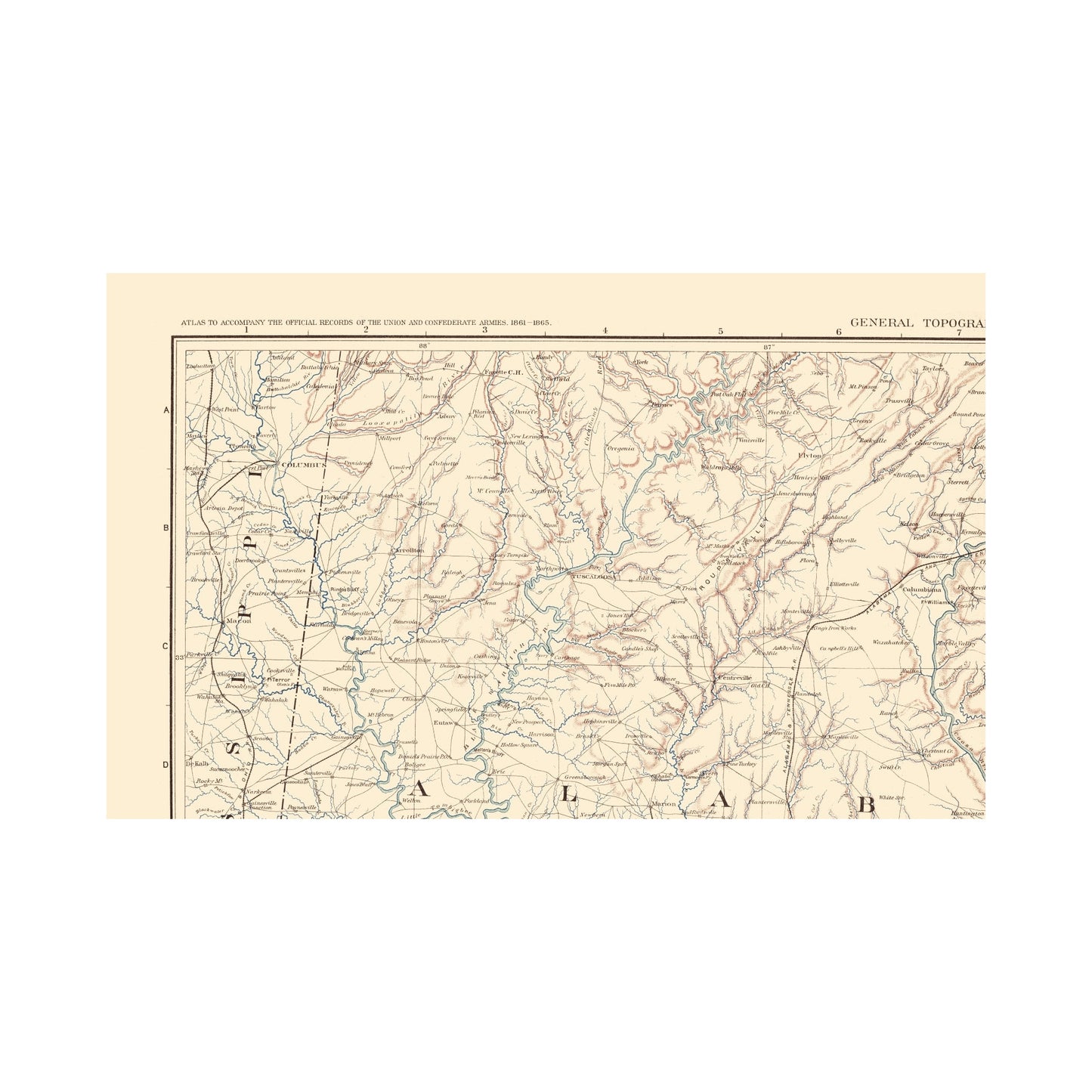 Civil War Map - Mississippi Alabama & Georgia Plate - BIEN 1895 - This is an exquisite full-color Reproduction printed on high-quality gloss paper, art paper or canvas.