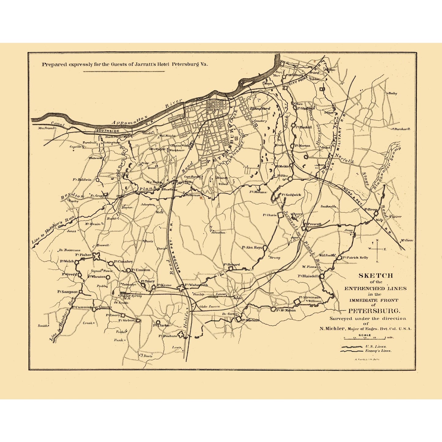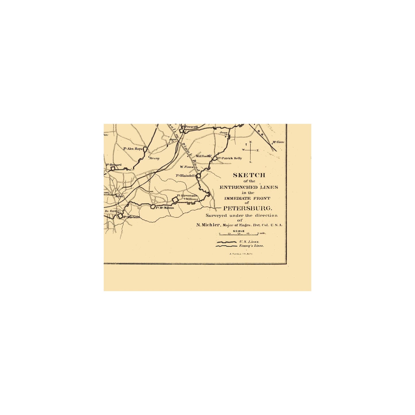 Historical Civil War Map - Petersburg Virginia - Michler 1865 - 28.51 x 23 - Vintage Wall Art
