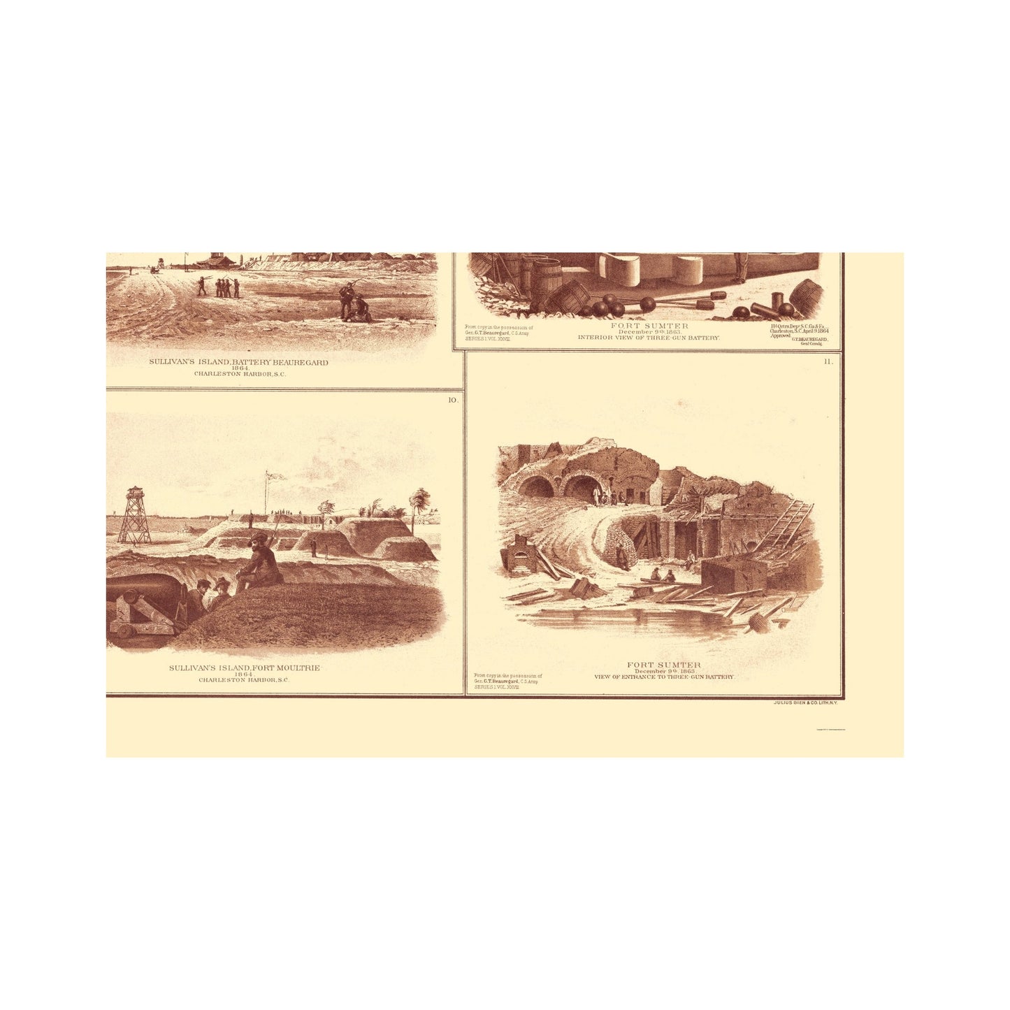 Civil War Map Print - Buildings And Forts South Carolina - BIEN 1895 - This is an exquisite full-color Reproduction printed on high-quality gloss paper, art paper or canvas.
