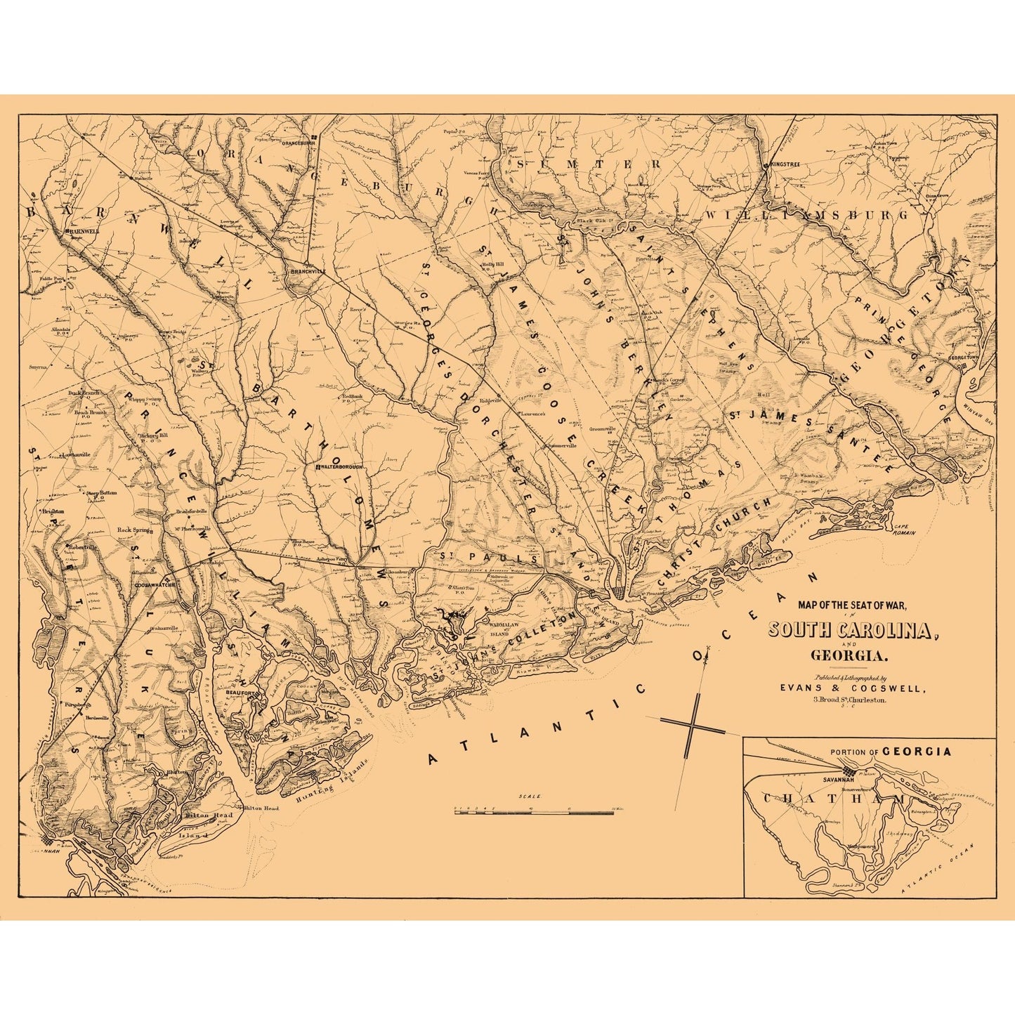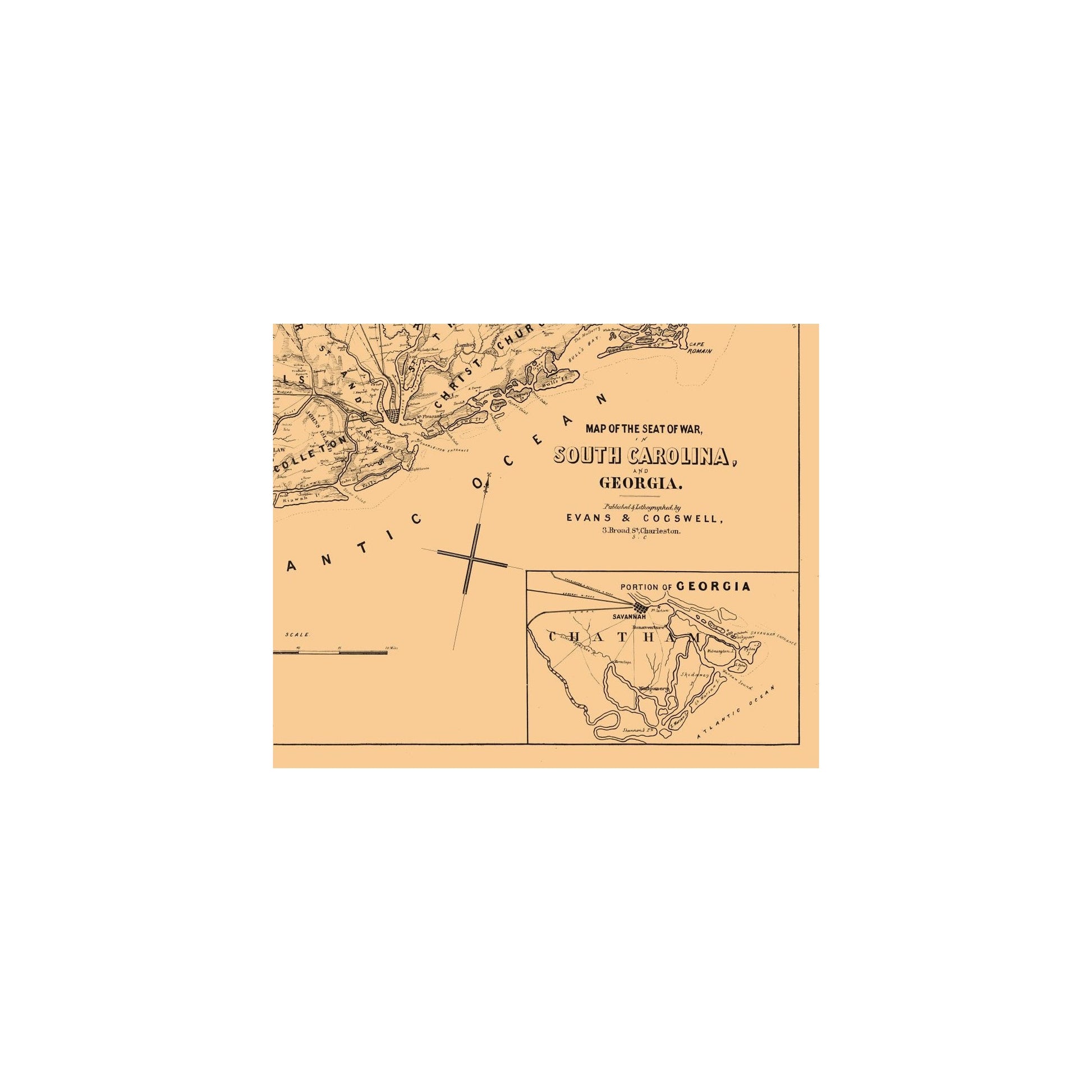 Civil War Maps - South Carolina Georgia - Cogswell 1861 - 28.26 x 23 - This is an exquisite full-color Reproduction printed on high-quality gloss paper, art paper or canvas.