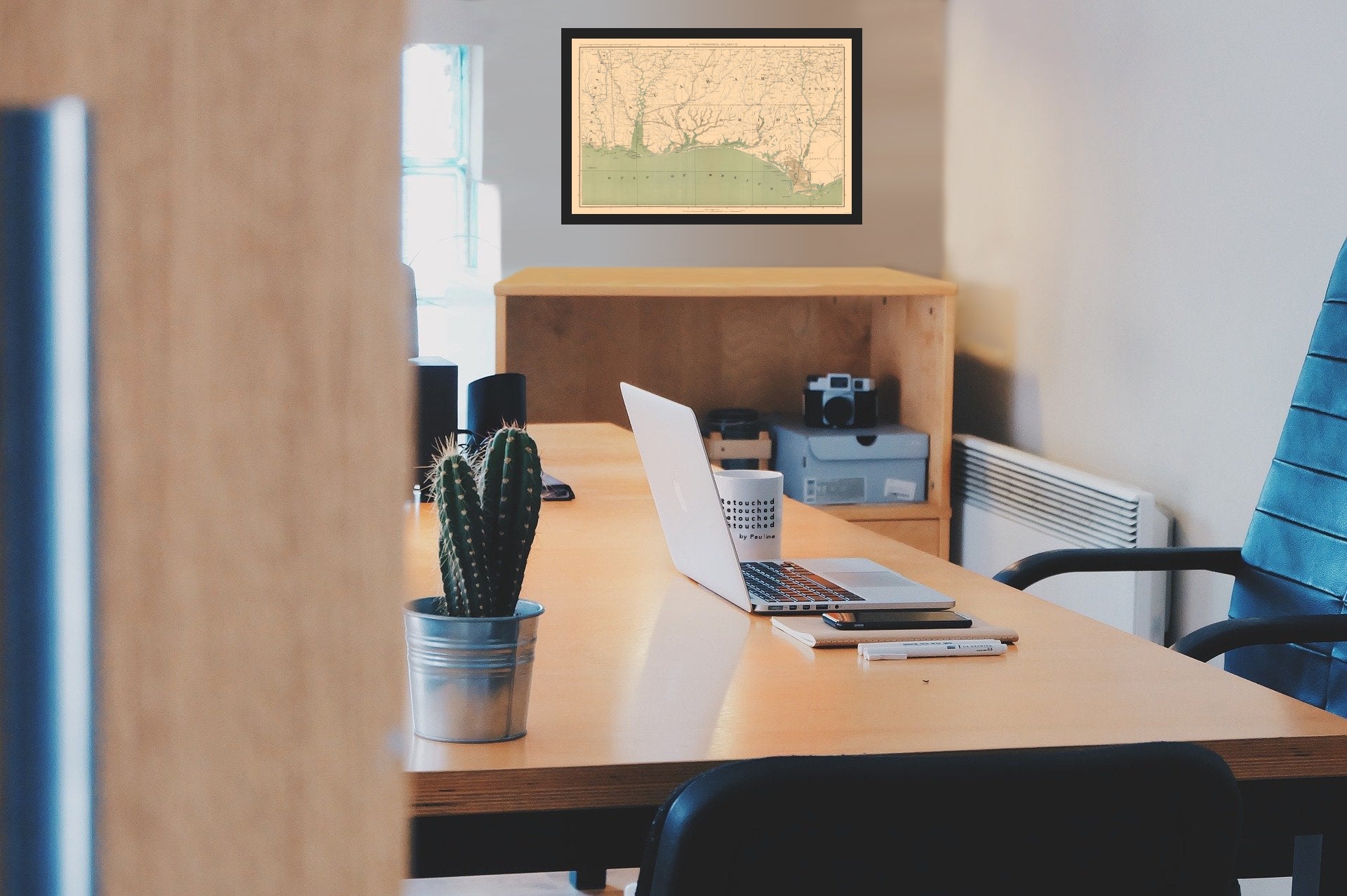 Original Maps are often difficult to find and usually have fold lines, identifying stamps or markings, tears, ragged edges, and assorted other natural signs of age that detract from their beauty. All of our maps have been professionally restored to depict their original beauty, while keeping all historical data intact.