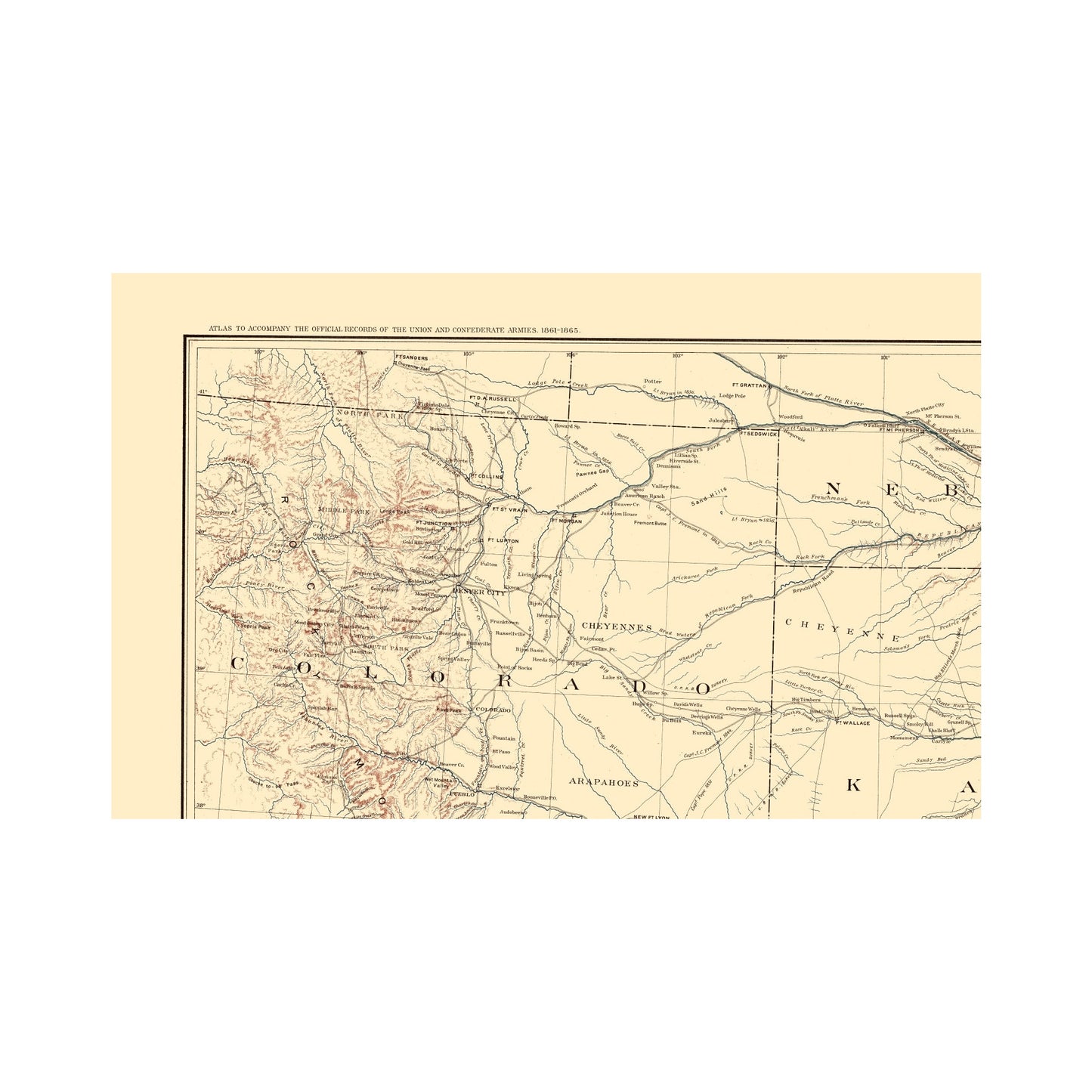 Civil War Map Print - Central United States - BIEN 1895 - This is an exquisite full-color Reproduction printed on high-quality gloss paper, art paper or canvas.