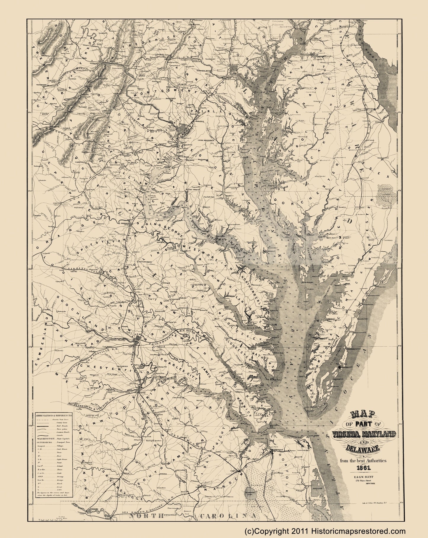 Civil War Map Print - Virginia, Maryland & Delaware - Blunt 1861 - This is an exquisite full-color Reproduction printed on high-quality gloss paper, art paper or canvas.