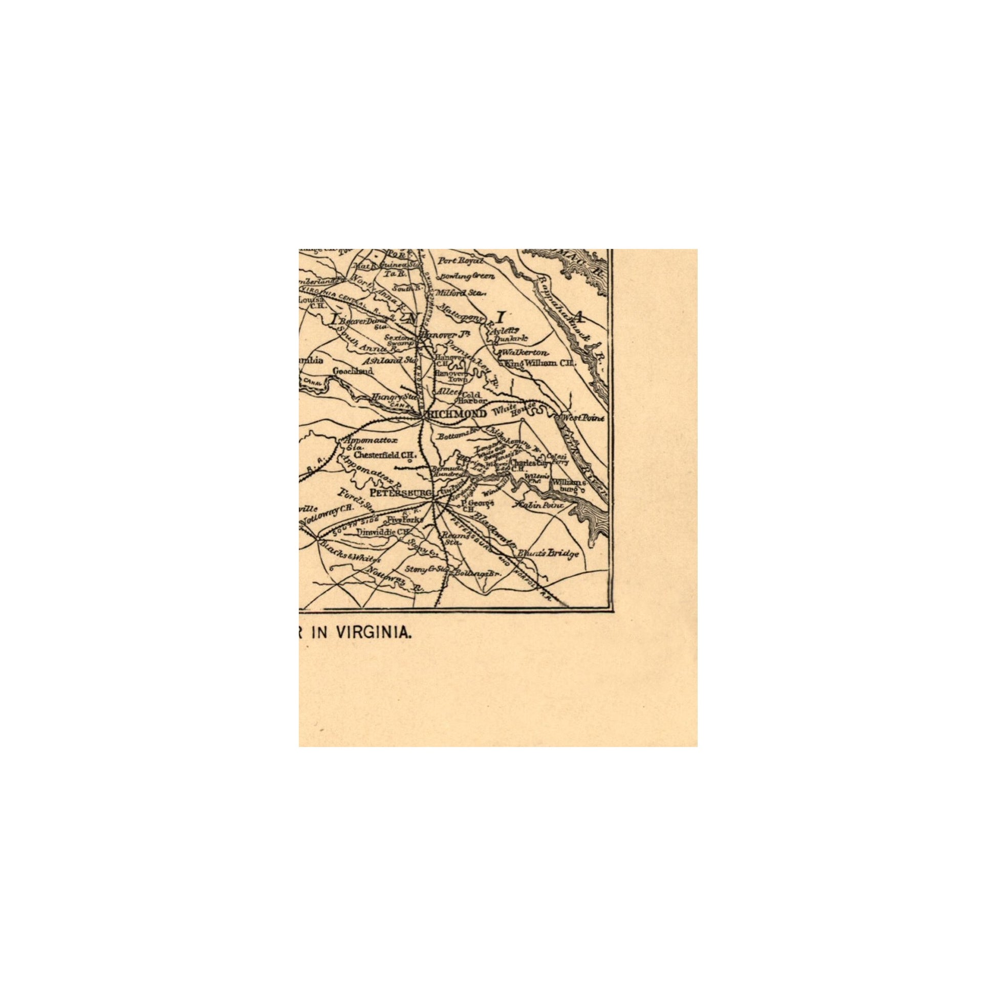 Civil War Maps - Seat of War Virginia 1865 - This is an exquisite full-color Reproduction printed on high-quality gloss paper, art paper or canvas.