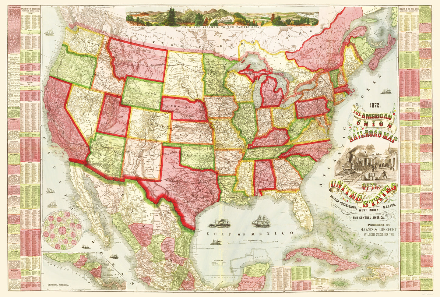 Railroad Map - American Union Railroads - Haasis 1866 - 23 x 34.08 - Vintage Wall Art