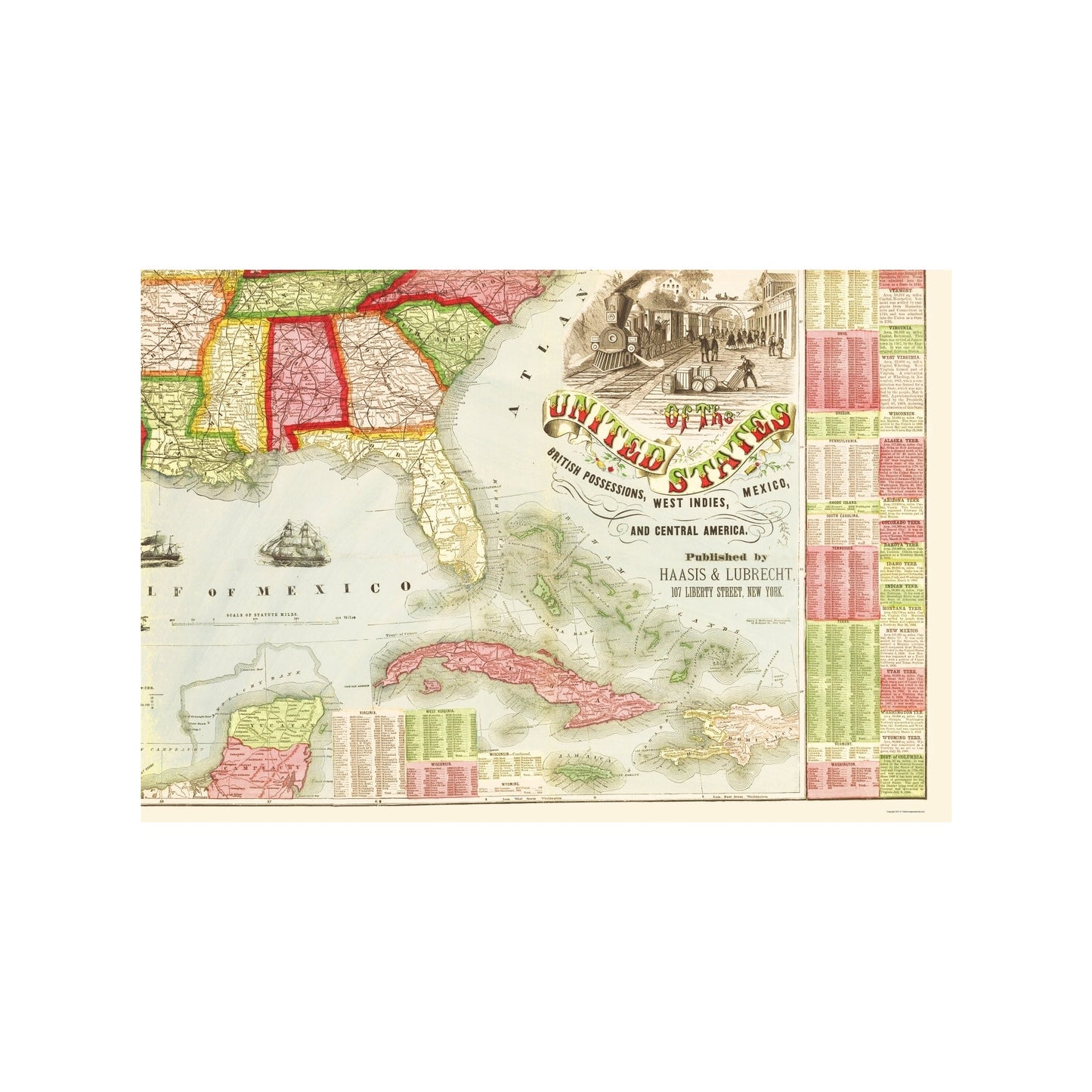 Old Railroad Map - American Union Railroads - Haasis 1866 - This is an exquisite full-color Reproduction printed on high-quality gloss paper, art paper or canvas.