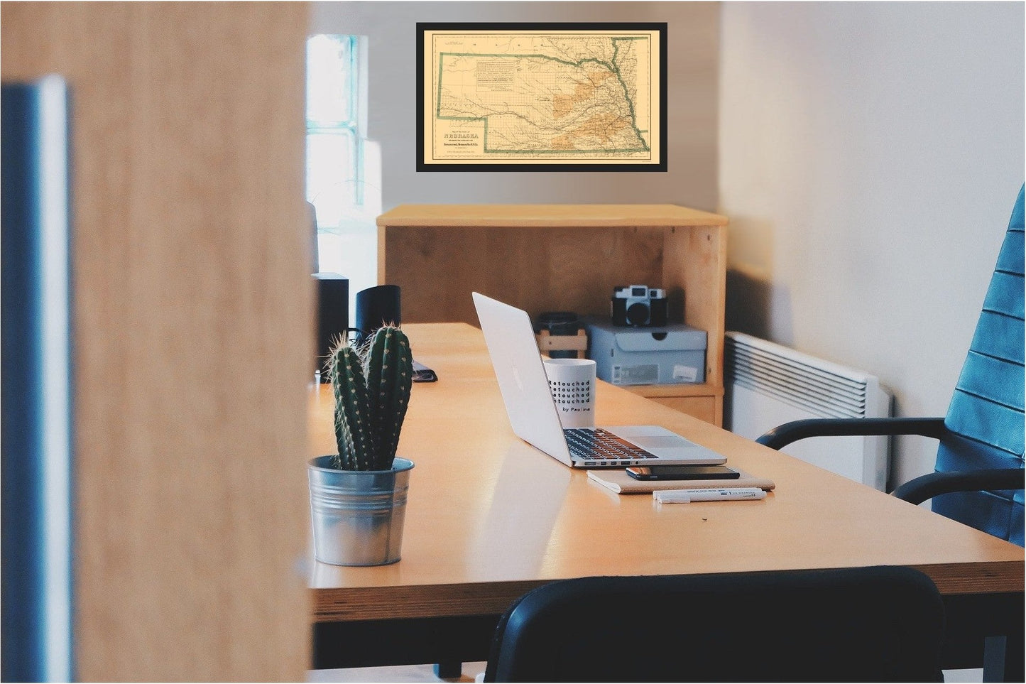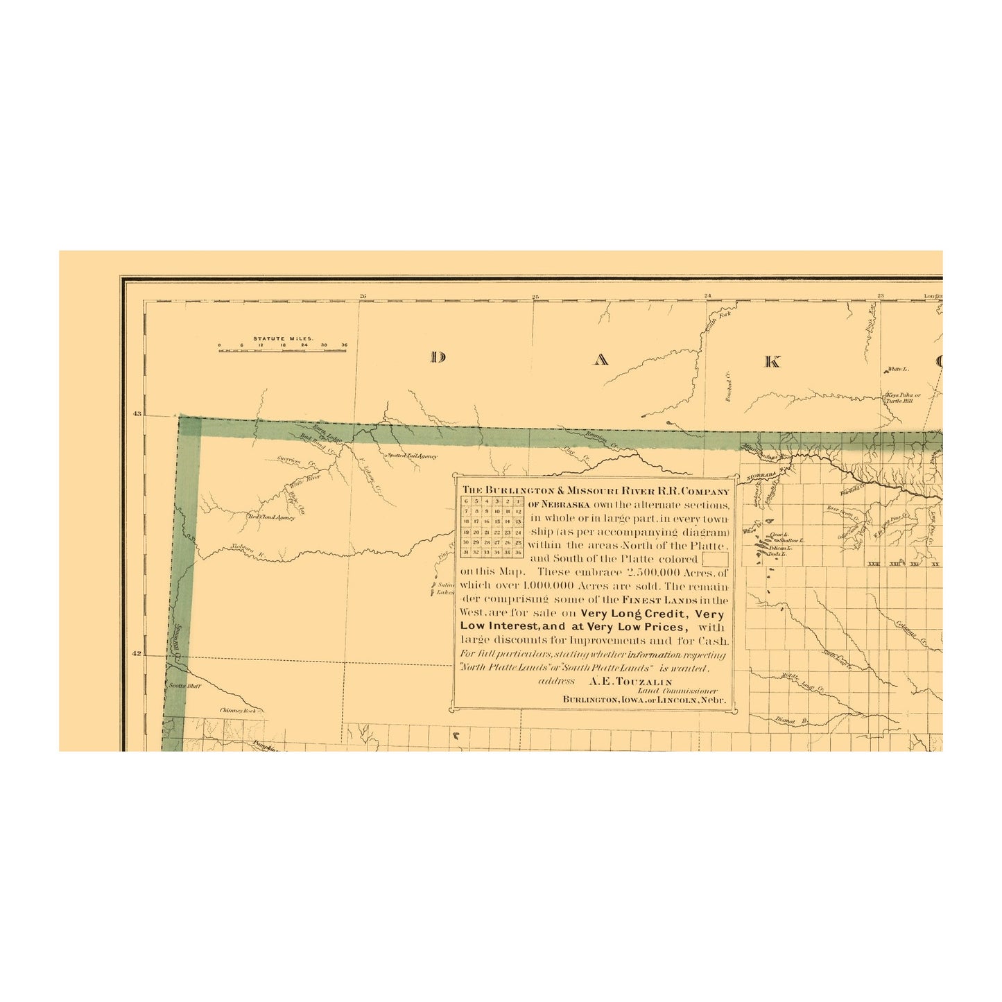 Old Railroad Map - Burlington and Missouri River Railroad 1876 - This is an exquisite full-color Reproduction printed on high-quality gloss paper, art paper or canvas.