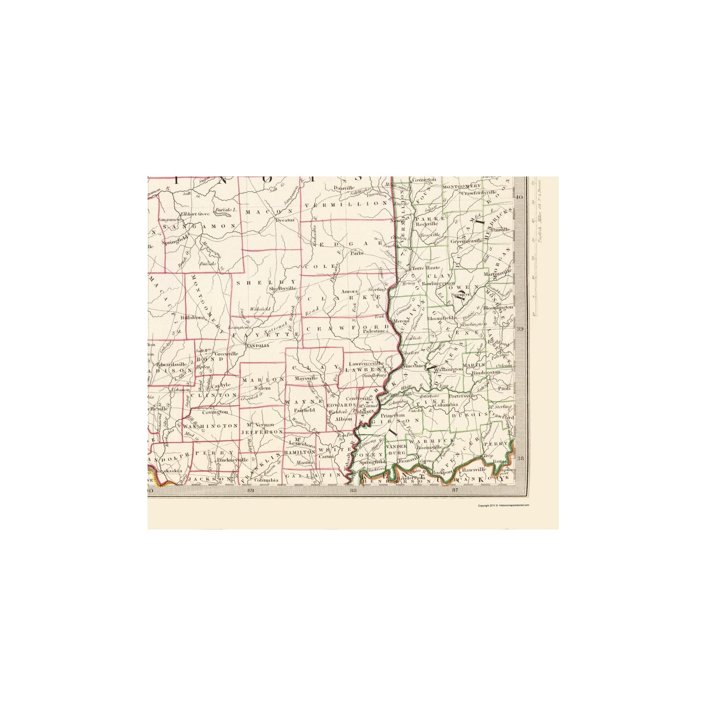 Old State Map - Illinois - Walker 1846 - This is an exquisite full-color Reproduction printed on high-quality gloss paper, art paper or canvas.