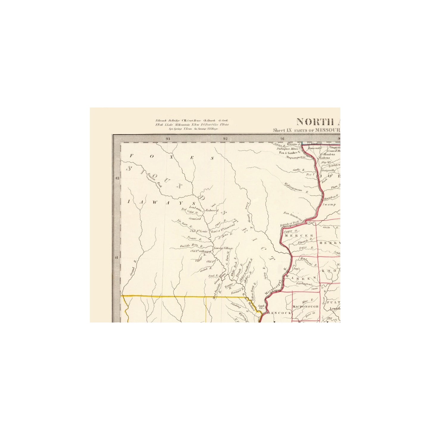 The following towns are featured: waterways include the Mississippi River, Lake Michigan, Illinois River, Ohio River, and more. Some of the surrounding area is that of Indian Territories.
