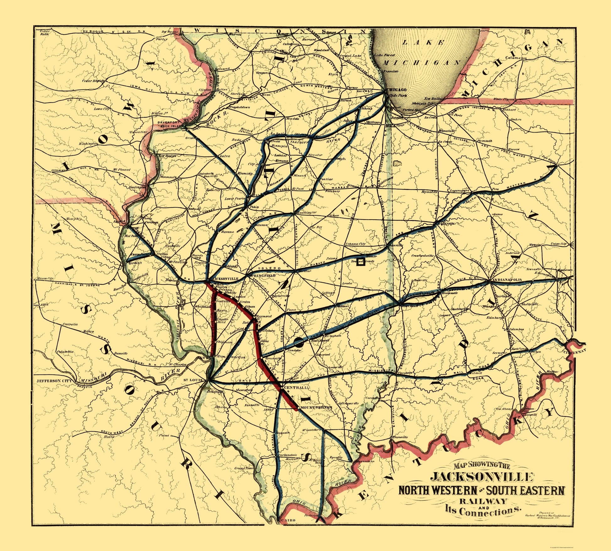Sites and Townships Specific To This Map Are: Chicago, Jacksonville, Springfield, St Louis, Springfield, Indianapolis, and Fort Wayne.