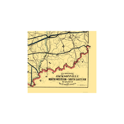 Old Railroad Map - Jacksonville Northwestern, Southeastern 1850 - This is an exquisite full-color Reproduction printed on high-quality gloss paper, art paper or canvas.