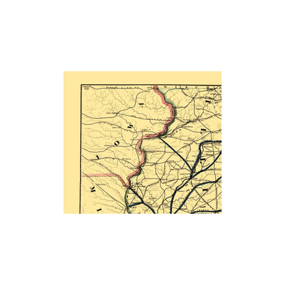 Railroad Map - Jacksonville Northwestern Southeastern 1850 - 23 x 25 - Vintage Wall Art