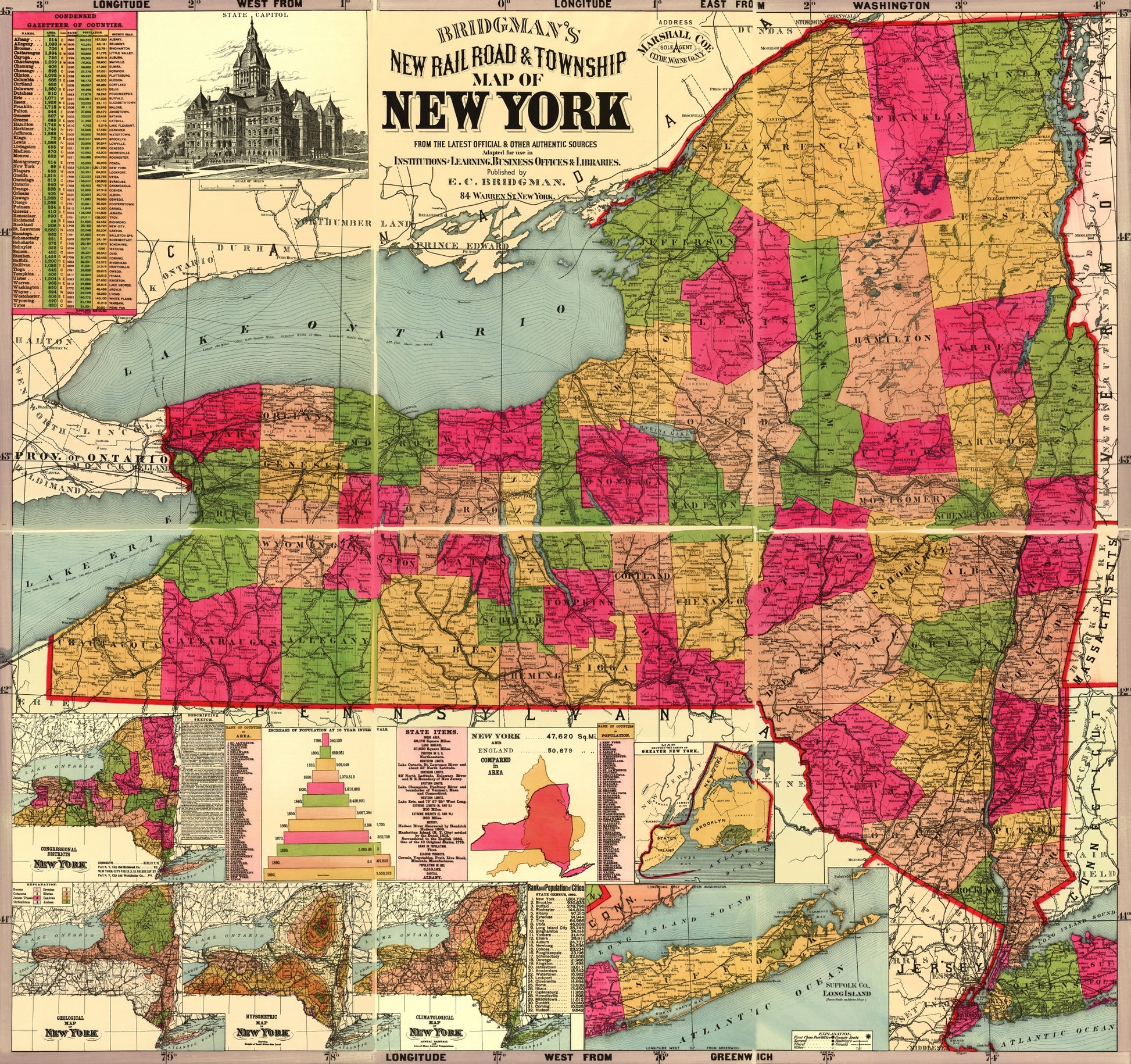 Railroad Map - New York Railroads Townships - Bridgman 1896 - 23 x 24.46 - Vintage Wall Art