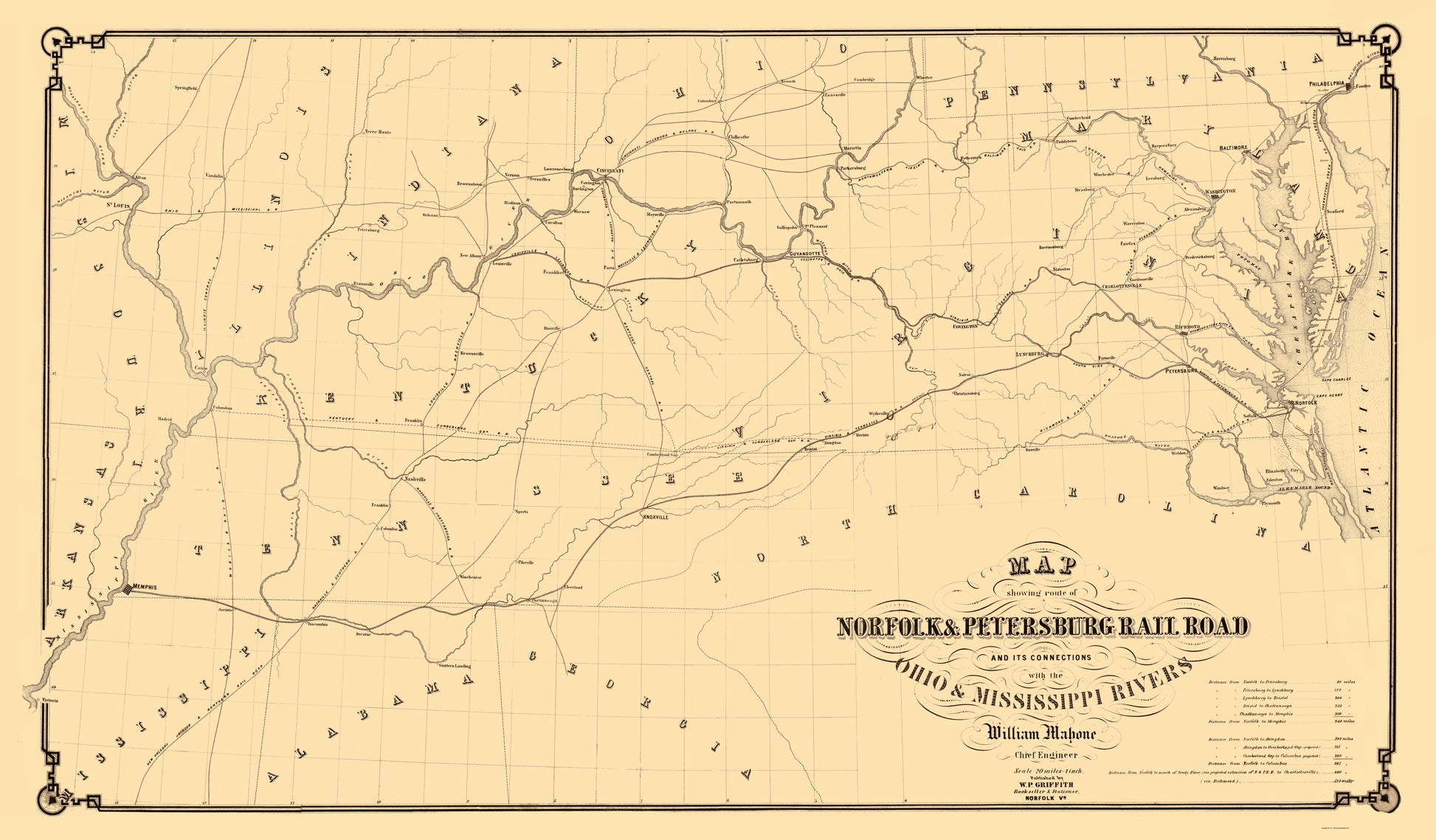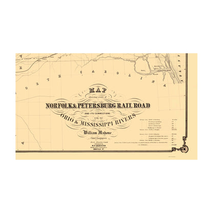 Old Railroad Map - Norfolk and Petersburg Railroad - Griffith 1858 - This is an exquisite full-color Reproduction printed on high-quality gloss paper, art paper or canvas.