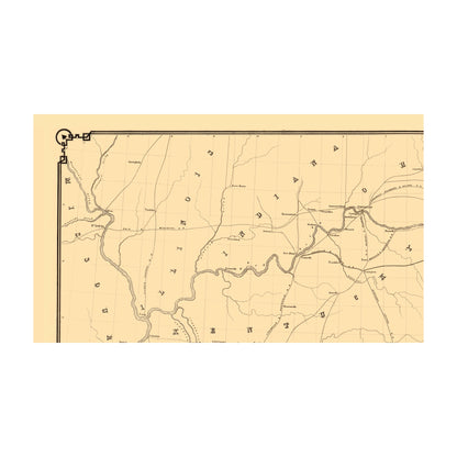 The following towns are featured: the eastern United States between the Chesapeake Bay and the Mississippi River. It shows drainage, place names, and the railroad network. The rail line was chartered March 17, 1851, completed in 1858, and consolidated in April 1871, forming part of the Atlantic, Mississippi, and Ohio Railroad.