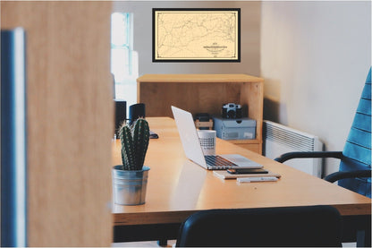 Original Maps are often difficult to find and usually have fold lines, identifying stamps or markings, tears, ragged edges, and assorted other natural signs of age that detract from their beauty. All of our maps have been professionally restored to depict their original beauty, while keeping all historical data intact.