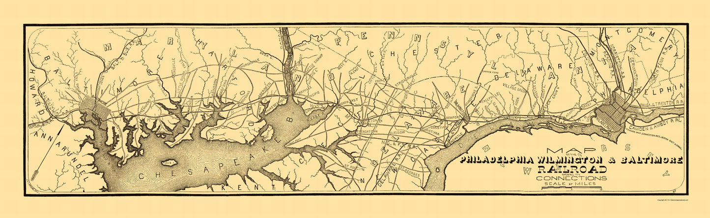 Old Railroad Map - Philadelphia, Wilmington, Baltimore Railroad 1850 - This is an exquisite full-color Reproduction printed on high-quality gloss paper, art paper or canvas.