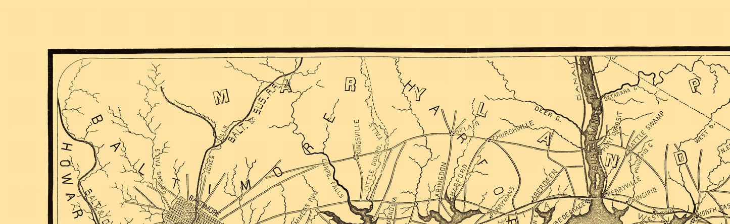 Railroad Map - Philadelphia Wilmington Baltimore Railroad 1850 - 23 x 74 - Vintage Wall Art