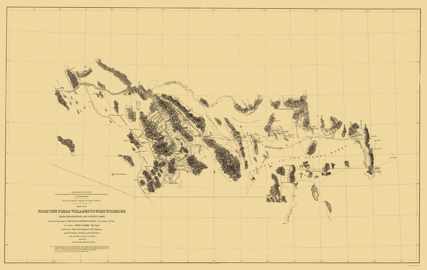 Railroad Map - Pimas Villages Fort Fillmore Route - Parke 1855 - 23 x 36 - Vintage Wall Art