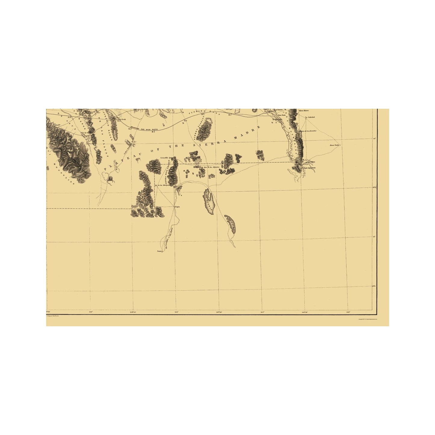 The following towns are featured: the Proposed Rail Road Route, Rio Gila, Rio de los Mimbres, Rio Bravo del Norte, Rio de tres Alamos, Rio Corralitos, Rio Salinas, Rio Arivayapa, Rio San Pedro, Prospect Creek, Babocomai Creek, Mineral Creek, Petahaya Creek, Sierra de la Estrella, Sierra Tortalito, Sierra de la Santa Catarina, Sierra Colorado, Sierra Calitro, Sierra Madre, Sierra Boca Grande, Pina Leno Mountains, Chi-ri-ca-hui Mountains, Organos Mountains, Saddle Mountain, Peloncillo Mountain Range, Pyramid Mountain Range, Quercus Canyon, Croton Springs, San Pedro Spring, Water Hole, Grassy Plain, Undulating Plains, Nugents Pass, Dos Cabezas, Valley de Sauz, Valley de las Playas, Lake Guzman, Lake of Santa Maria, Coppermine, Cookes Emigrant Route,