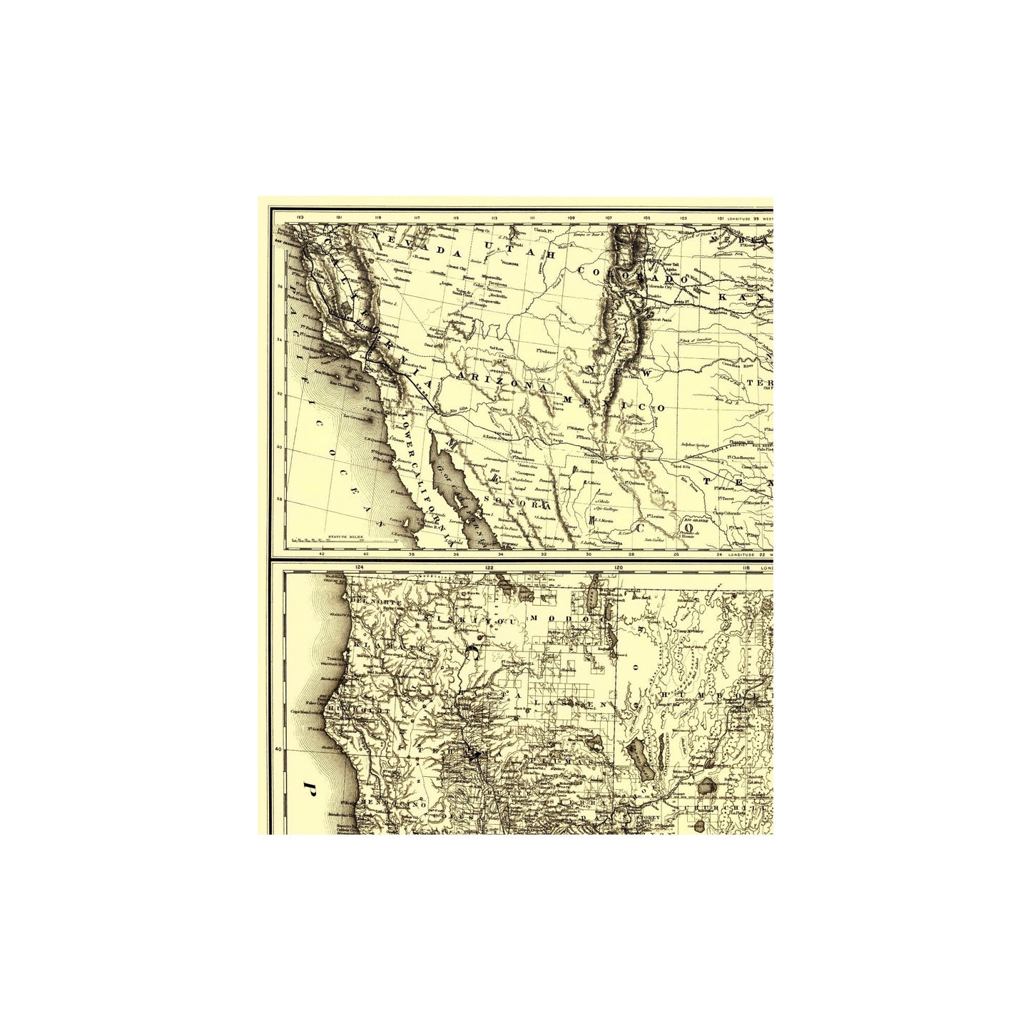 Railroad Map - Southern Pacific Railroad Connections - Colton 1875 - 23 x 28.51 - Vintage Wall Art