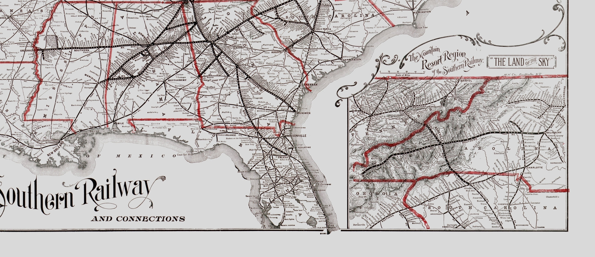 Railroad Map - Southern Railway - Matthews 1897 - 23 x 53.20 - Vintage Wall Art