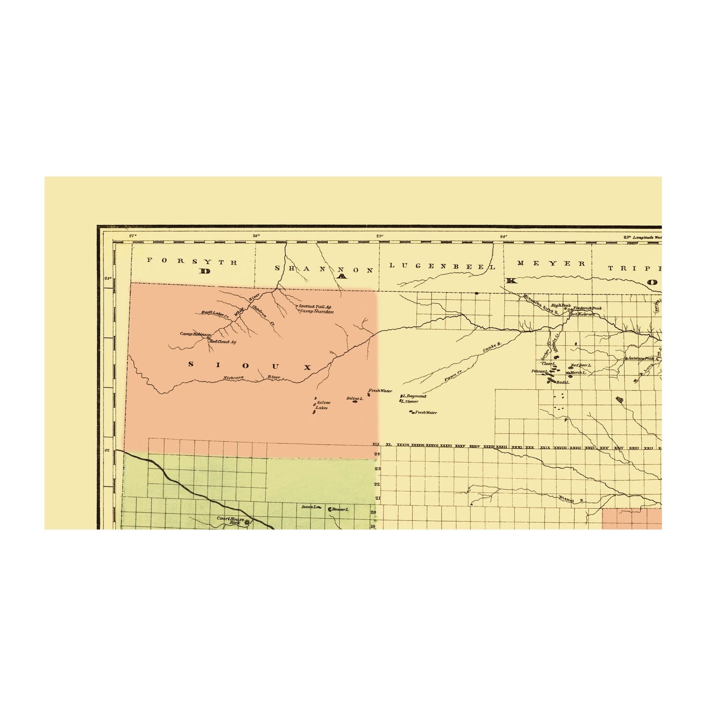 The following towns are featured: township and county map showing drainage, cities and towns, and the Union Pacific Railroad of Nebraska. At the same time homesteaders were getting free land from the government, large tracts of land were granted to railroads by both the states and the federal government. The goal was to encourage the railroads to construct their tracks where few people lived, and to help settle the country. The federal government was especially interested in creating a transportation system that would link the eastern seaboard with the western coast. Not only would a transcontinental railroad help populate the Great Plains, but it would tie the country together and also provide links to the potentially rich Asian trade. Approximately 16 percent of Nebraska's total land mass was given to various railroad companies, eith