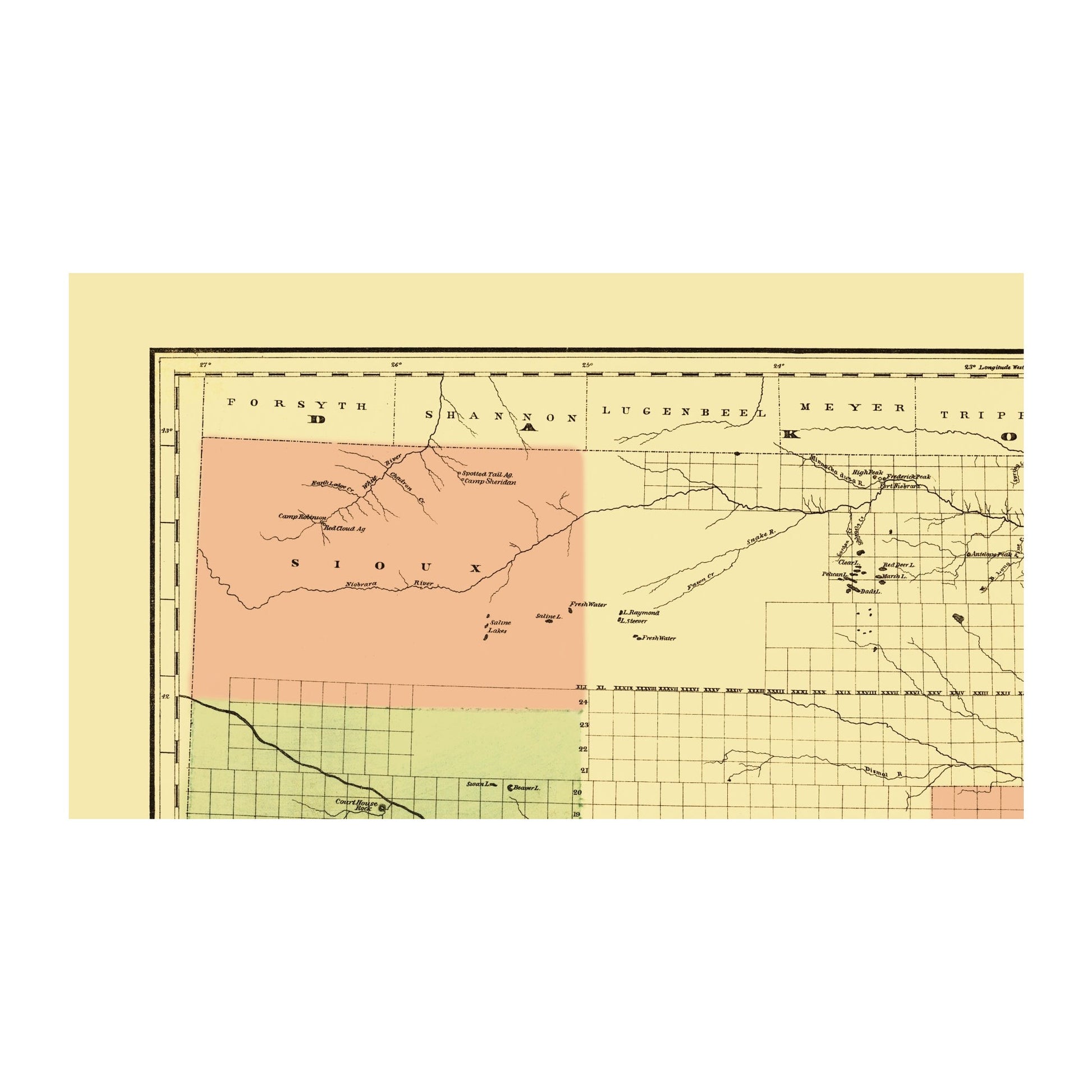 Old Railroad Map - Union Pacific Railroad Land Grant - Page 1880 - This is an exquisite full-color Reproduction printed on high-quality gloss paper, art paper or canvas.