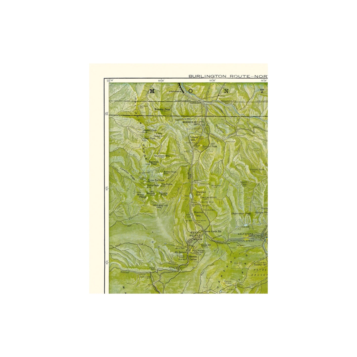 Old State Map - Yellowstone Park - Burlington Route 1898 - This is an exquisite full-color Reproduction printed on high-quality gloss paper, art paper or canvas.