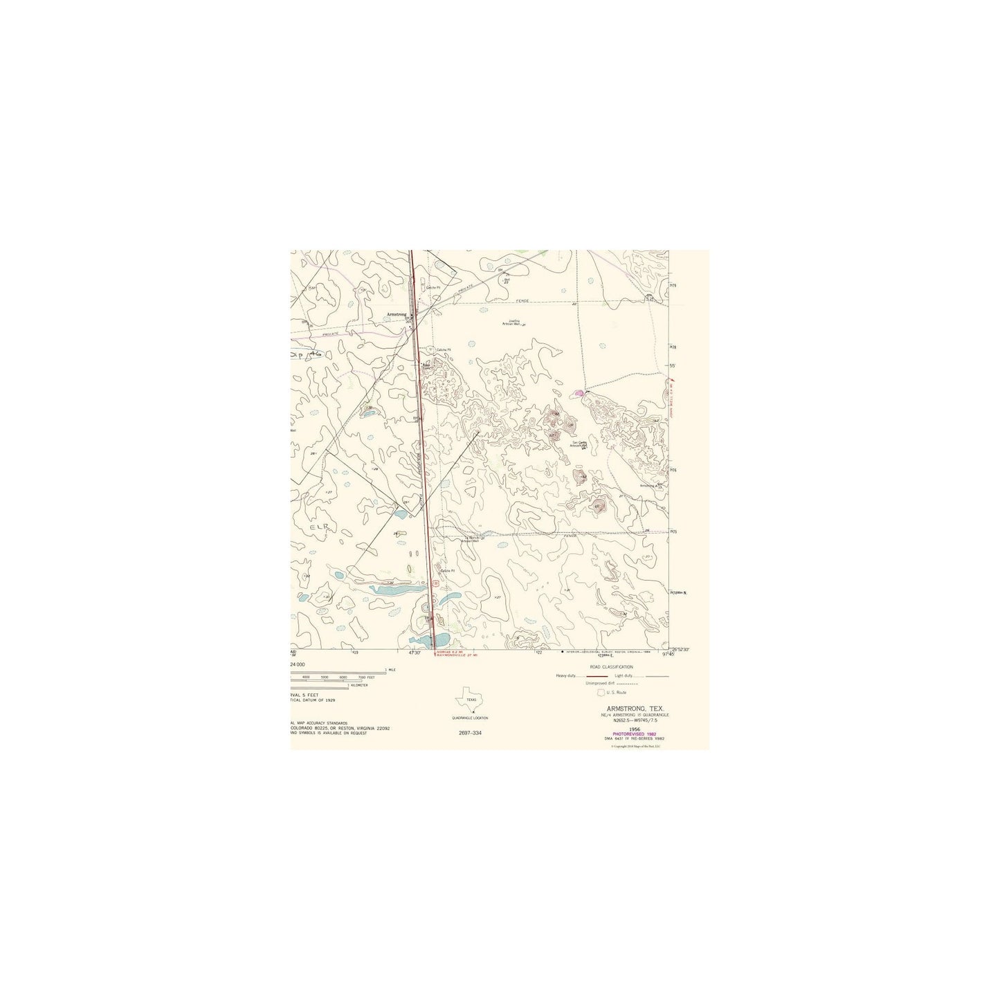 Historical Topographic Maps - Armstrong Texas Quad - USGS 1956 - This is an exquisite full-color Reproduction printed on high-quality gloss paper, art paper or canvas.