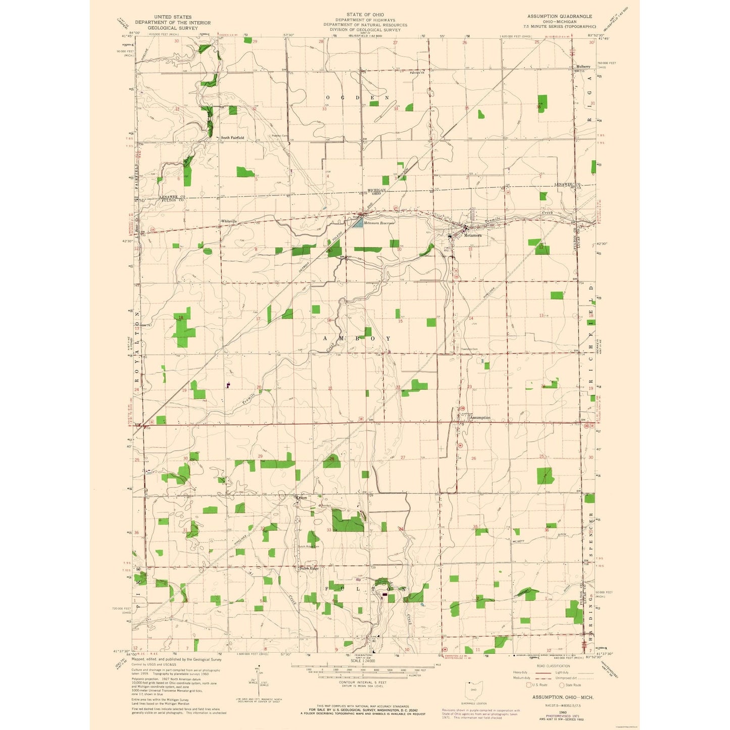 Historical Topographic Maps - Assumption Ohio Quad - USGS 1960 - This is an exquisite full-color Reproduction printed on high-quality gloss paper, art paper or canvas.