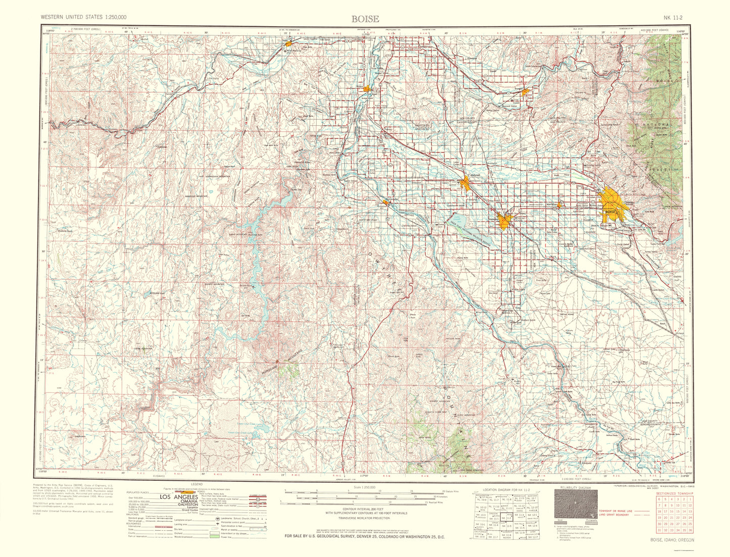 Topographical Map Print - Boise Idaho, Oregon Quad - USGS 1962 - This is an exquisite full-color Reproduction printed on high-quality gloss paper, art paper or canvas.